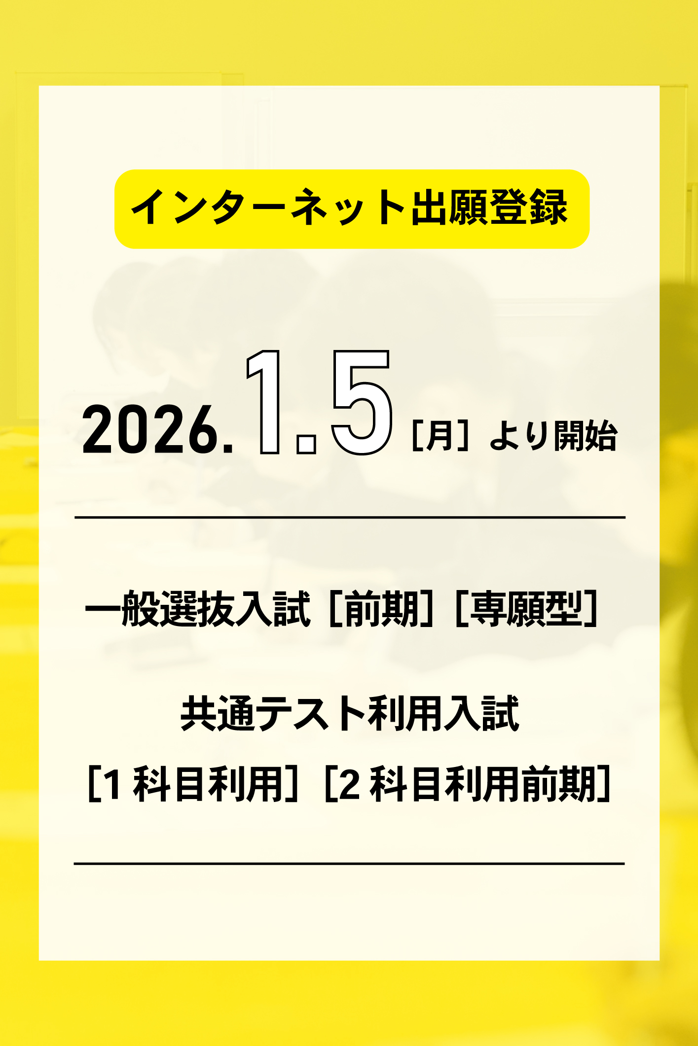 2026年度 一般選抜入試、大学入学共通テスト利用入試の出願登録受付を1/5(月)より開始