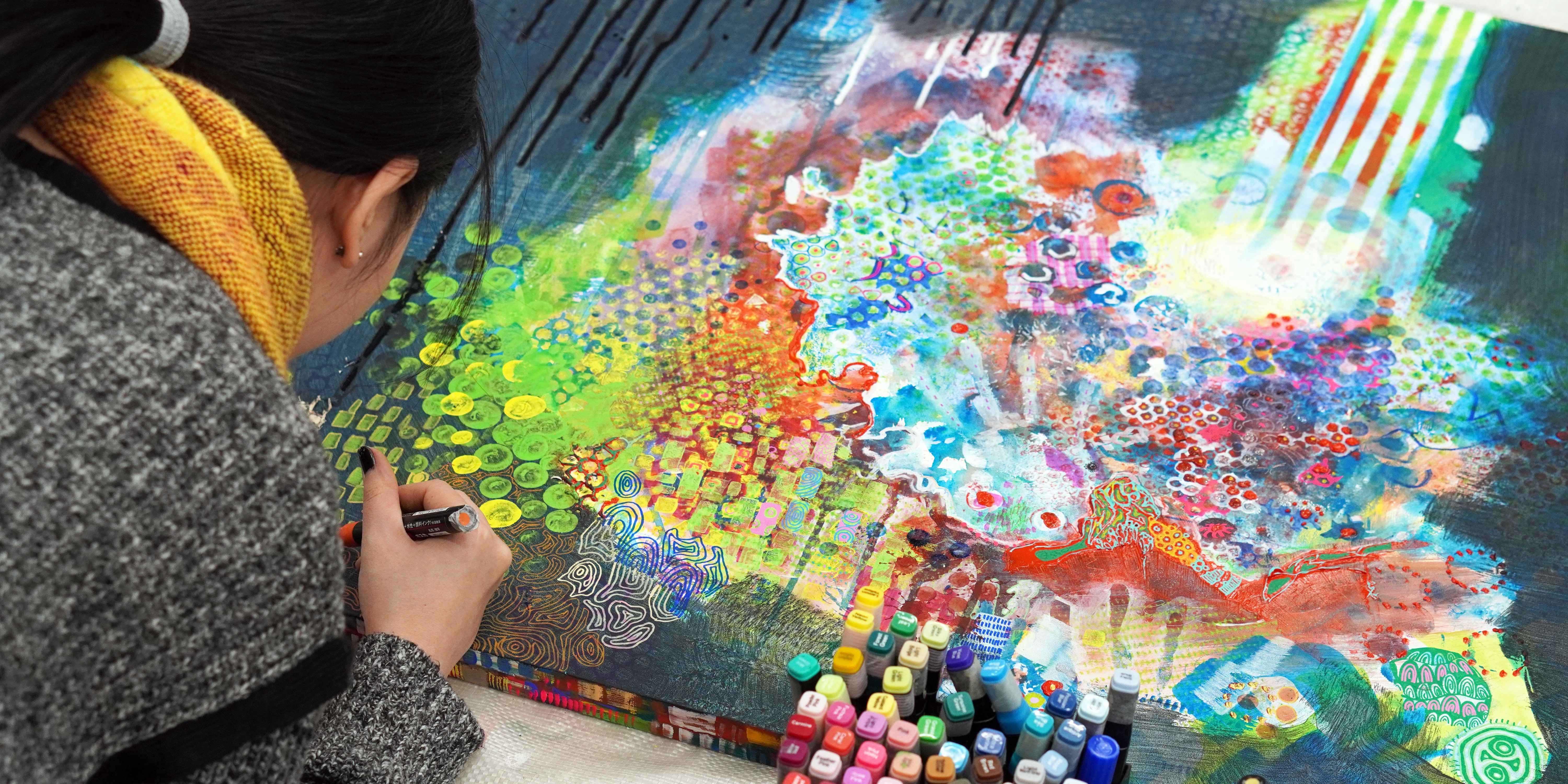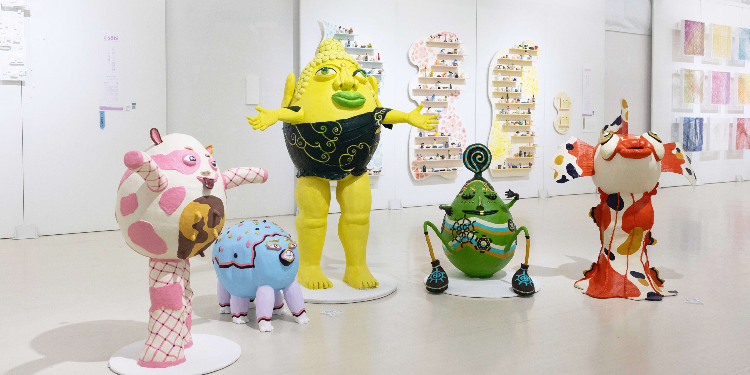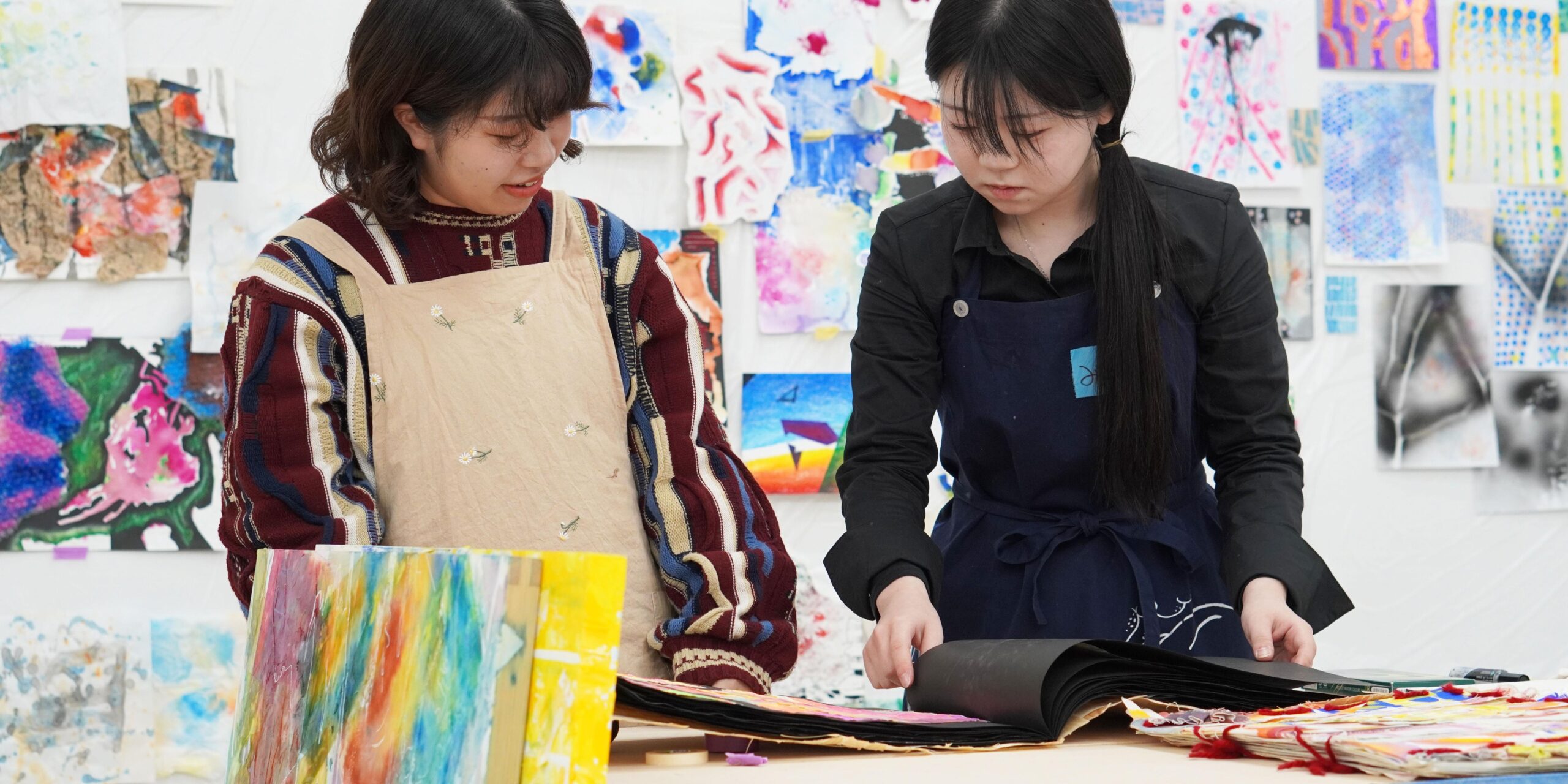 造形素材や表現技法、デジタル表現までさまざまなアートの基礎を学びます。そして、それらをまとめるデザイン力を身に付けます。技術を習得しながら、その時に感じたアートの 面白さや楽しさをアートワークショップやプロジェクトで社会に伝えていきます。