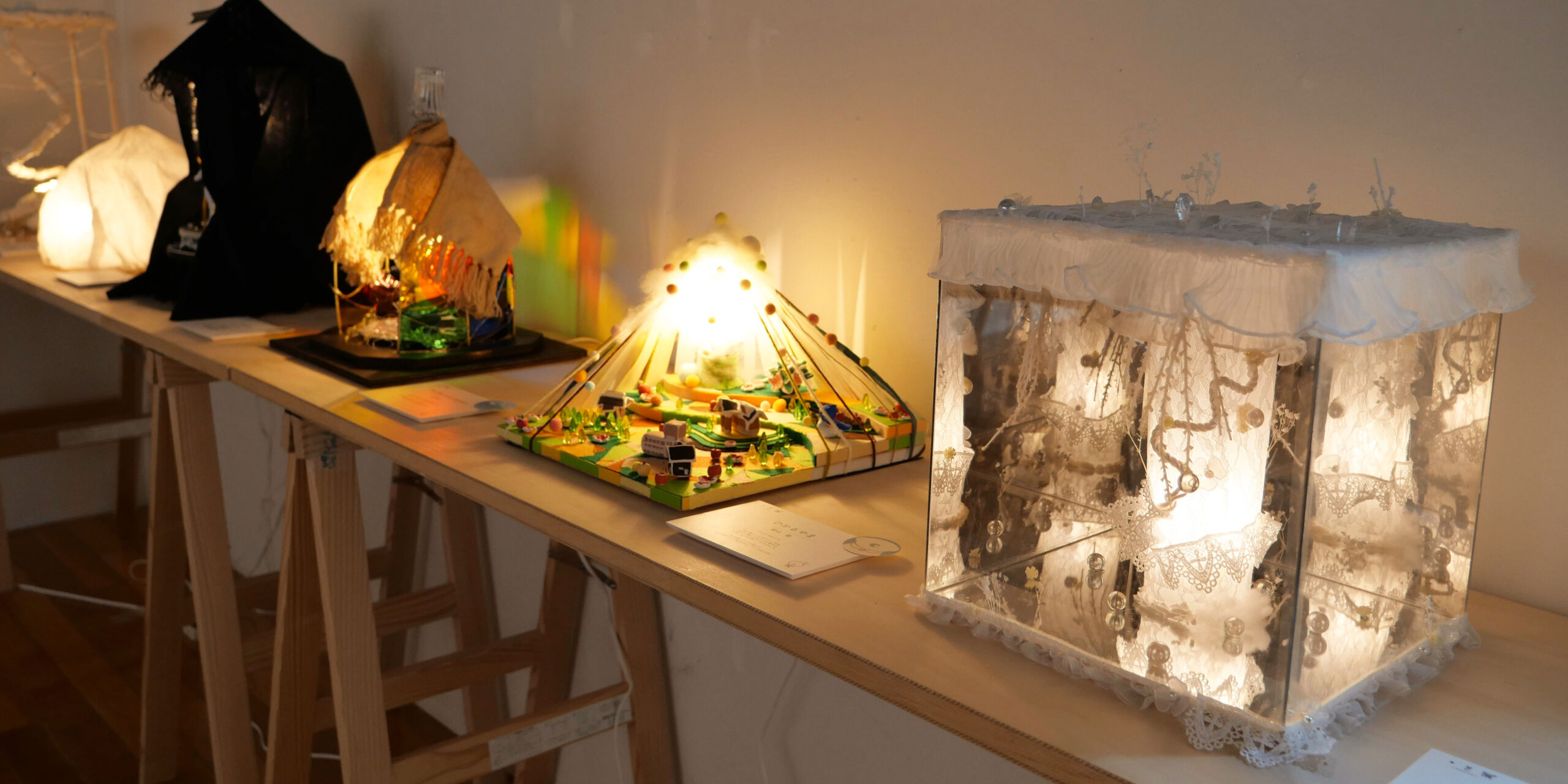 アートワークショップの企画・運営を行い、みんなで学び合う場づくりを実践します。また、学内にあるこども園での実践活動や、作品制作と展覧会の開催など、アートを活用した場づくりの方法を身に付けます。