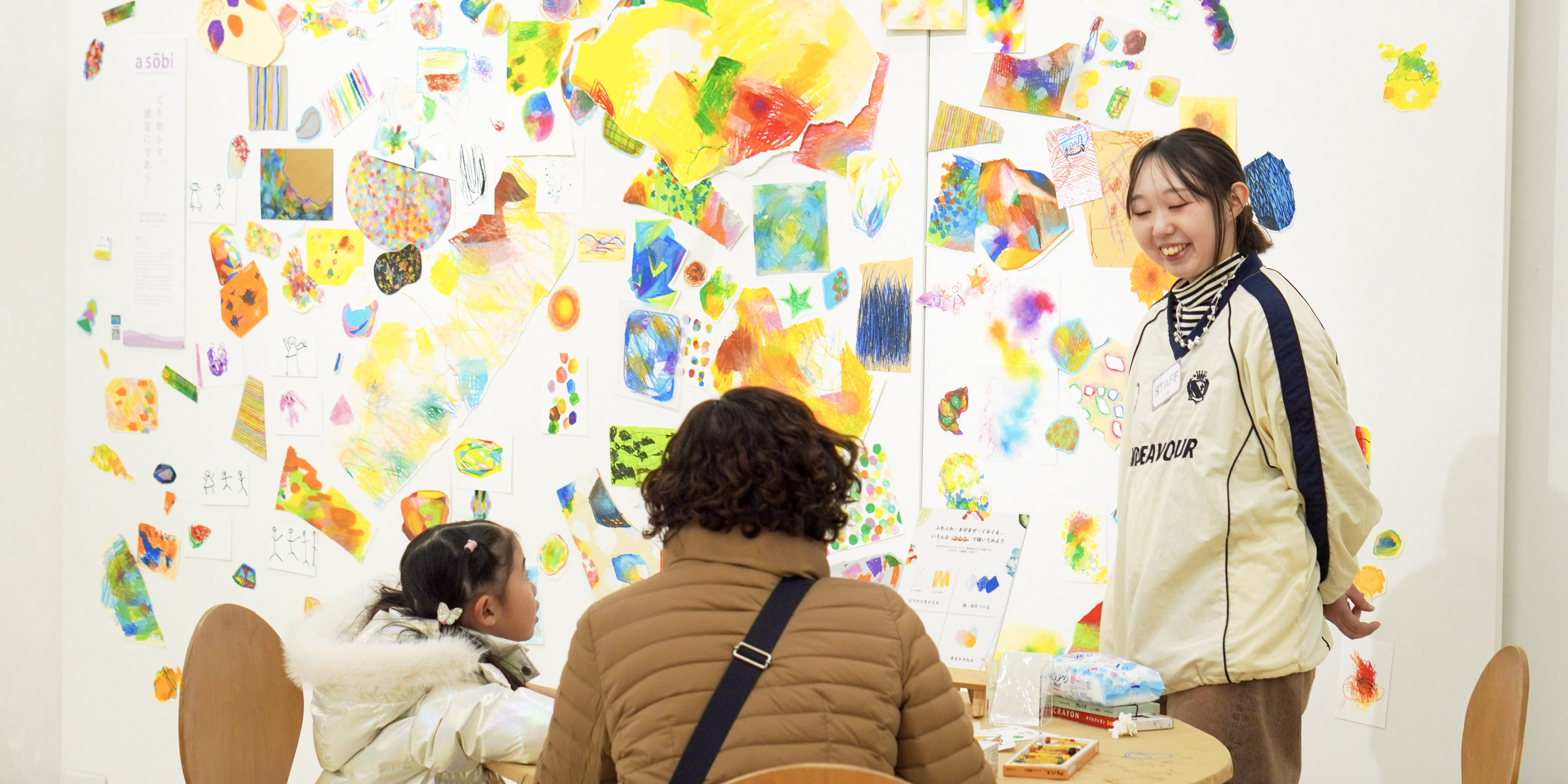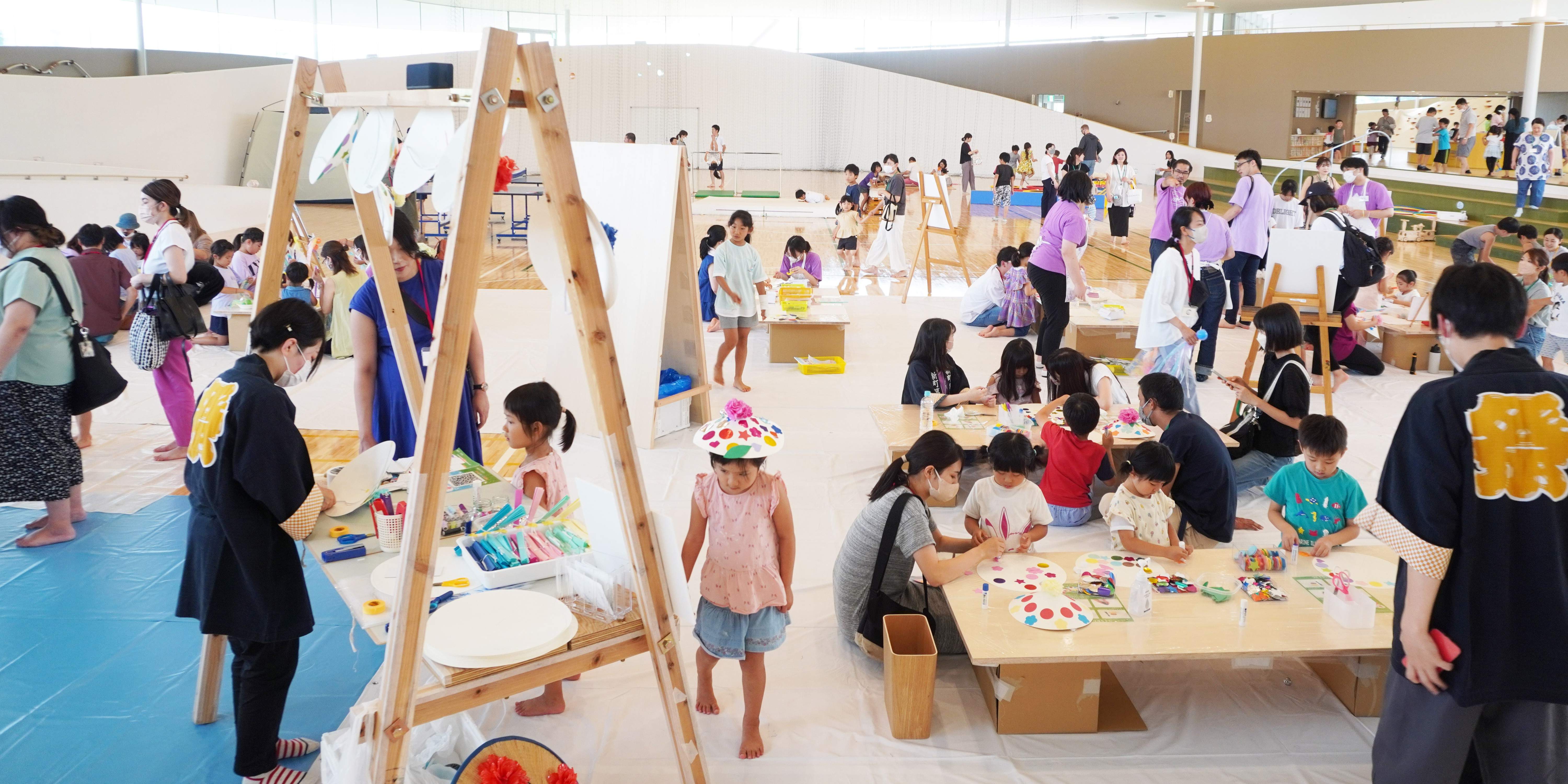 山形市にある「インクルーシブプレイス コパル」でアートを楽しく体験するアートワークショップイベントを開催しました。学生たちはチームに分かれてワークショップの企画・運営を行いました。当日は100人以上の子どもたちが参加し、学生たちと楽しい時間を過ごしました。