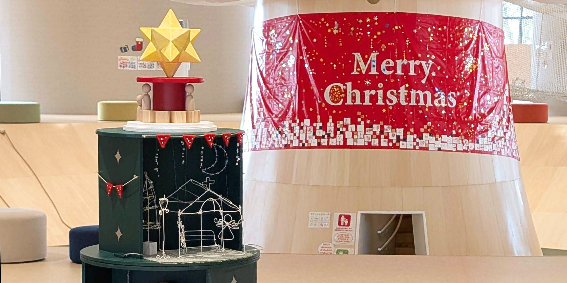 児童遊戯施設「さくらんぼこどもキャンパス CLAAPIN SAGAE」とのコラボ企画として、クリスマスオブジェを制作し、館内に展示しました。来場した子どもたちは手作りオーナメントを制作して飾り付けて、みんなでクリスマスを盛り上げました。