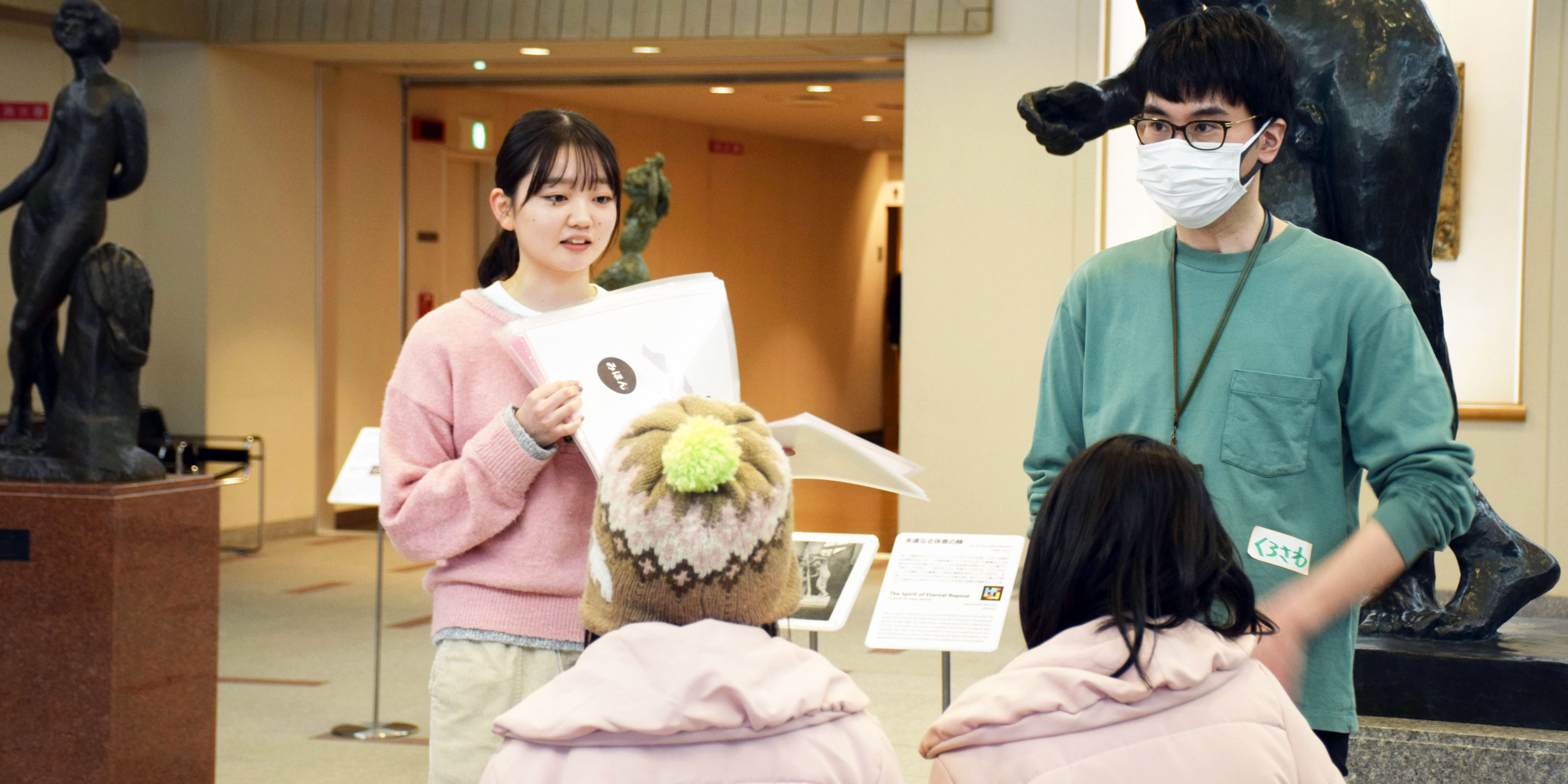山形美術館と共同で子どもたちを対象とした教育普及プログラム「山美のキッズデー」を企画・実践しました。対話型の作品鑑賞ツアーとアートワークショップを行い、子どもたちに美術を楽しく学んでもらいました。