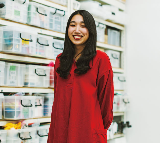 ⼩学校の図画⼯作専科教員を⽬指しています。総合美術コースでの学びや、さまざまな⼈との交流を通してファシリテーション⼒を磨き、アートを楽しむことができる場づくりの⼒を⾼めています。また教員と並⾏して作家活動を⾏うことも視野に⼊れた制作活動の継続や、⼤学在学中に幅広い社会経験を積むため、温泉や遊園地、インドカレー屋や結婚式場でアルバイトに取り組んでいます。