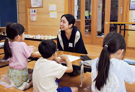 夏休みに⼩学校の児童クラブで⼩学⽣を対象にアートワークショップを実践しました。学外での実践は初めてでしたが、こどもたちと⼀緒に楽しい時間を過ごすことが出来ました。