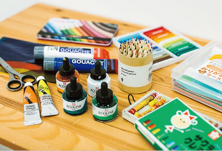 好きで買い溜めてしまった画材が、ワークショップや授業で活躍しています。⾊々な画材が⼿元にあるとどのような作品を作ろうかわくわくできるので楽しいです。