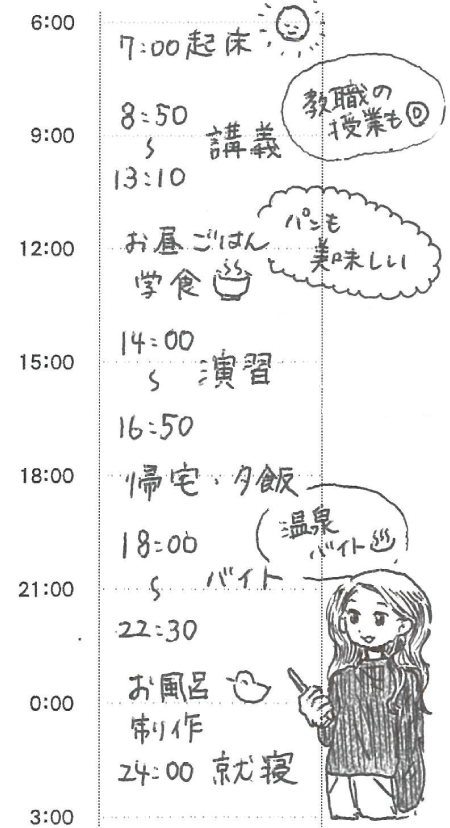 奨学金 7万5千円、バイト1万5千円、仕送り3万円