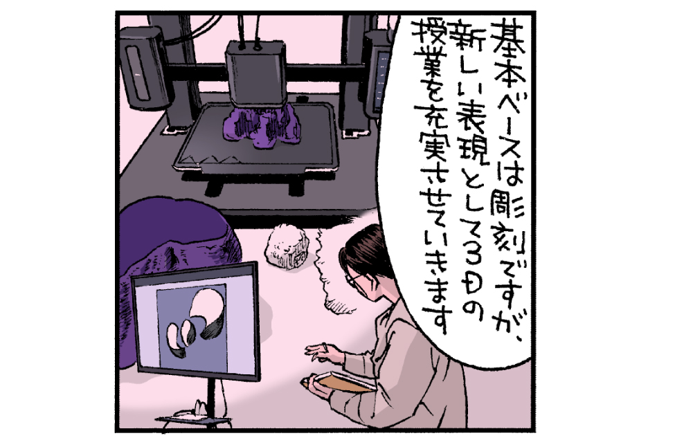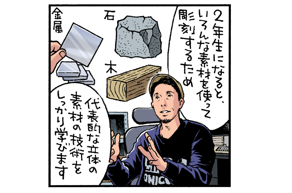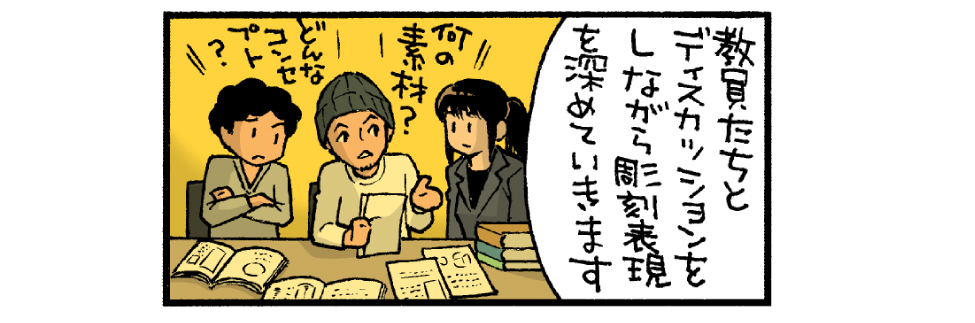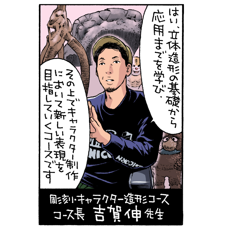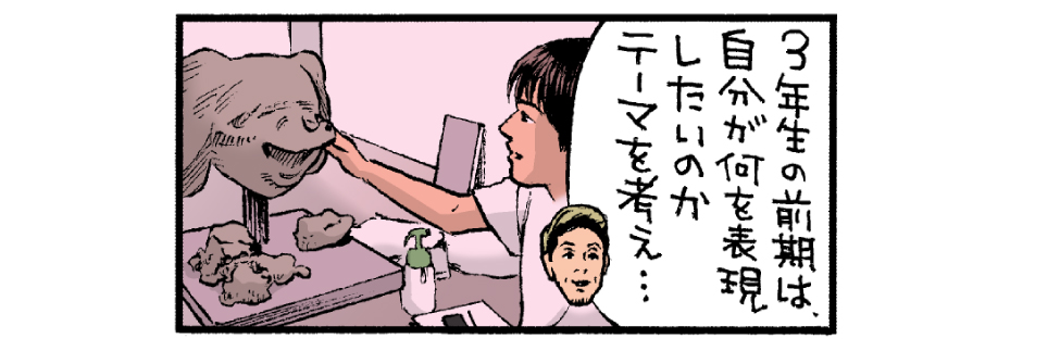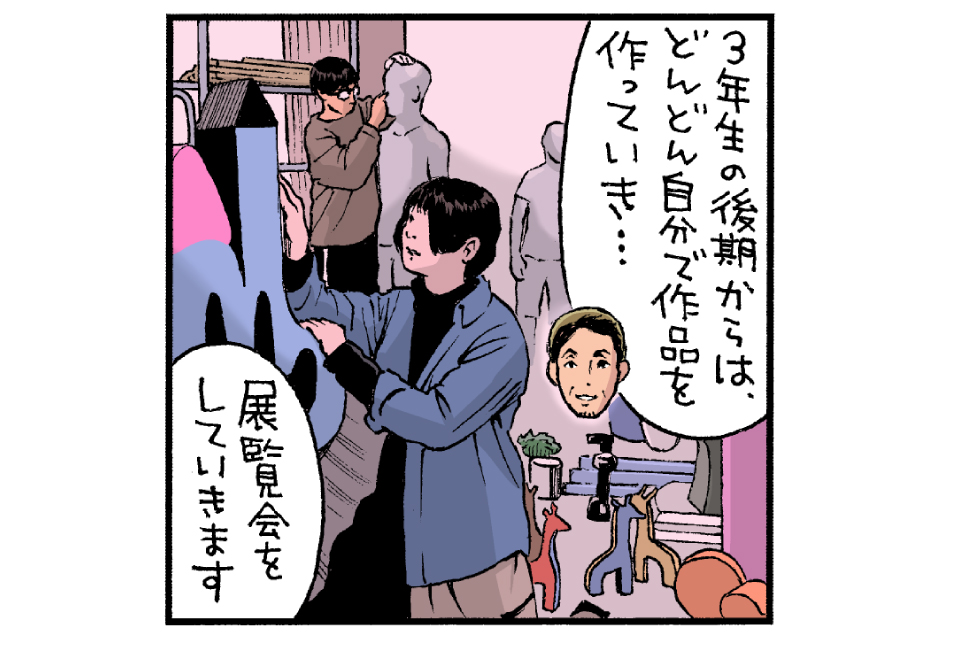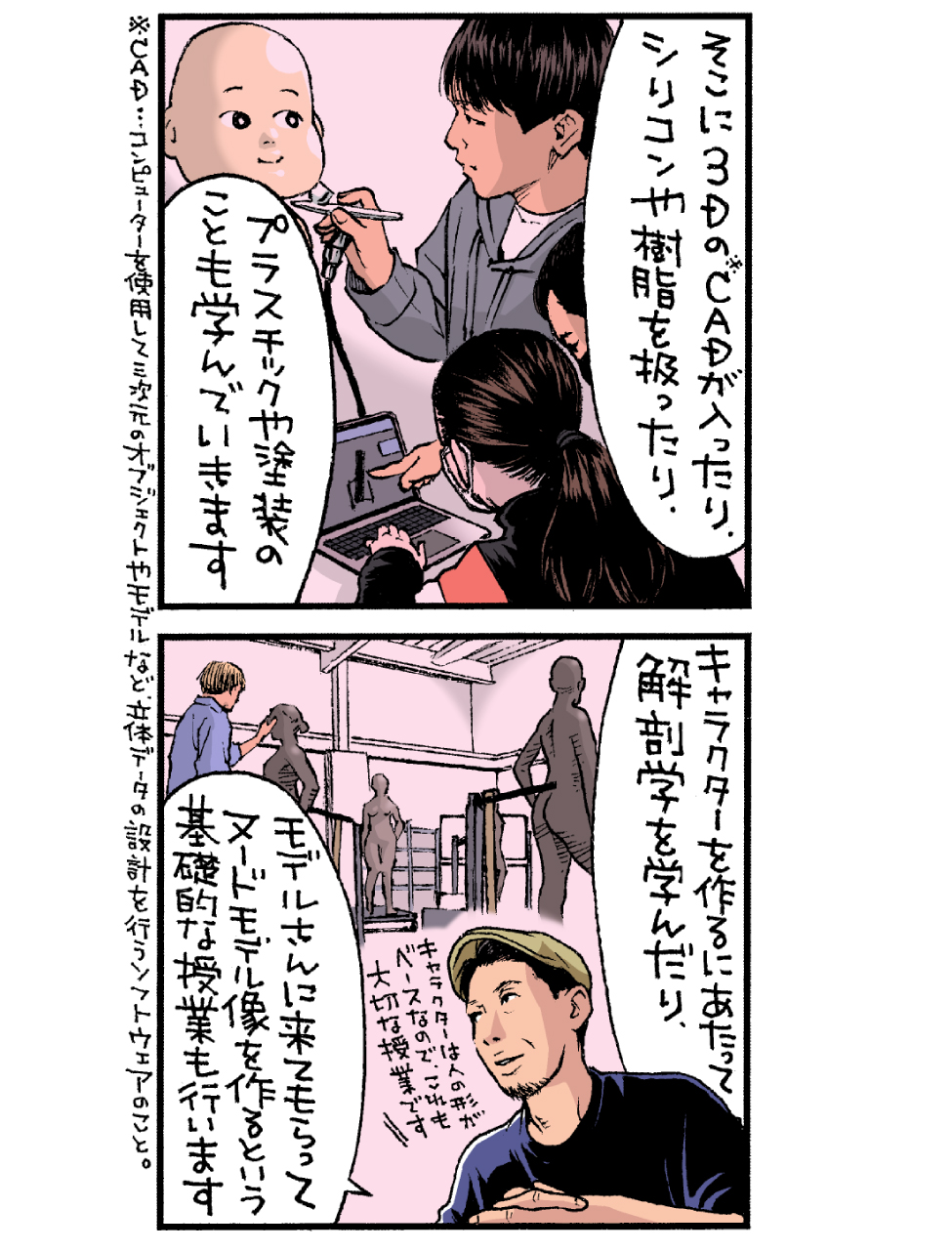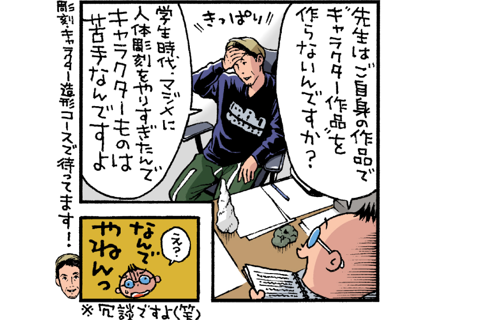 TOP > 文芸学科のマンガ連載 > 【マンガ連載】オトナがつたえる芸工大 #007「美術科 彫刻・キャラクター造形コース編」
