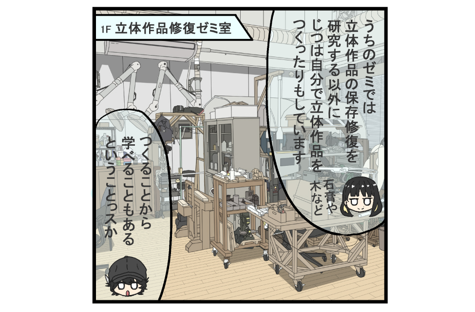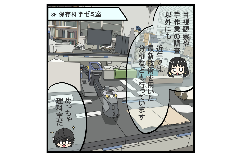 TOP > 文芸学科のマンガ連載 > 【マンガ連載】オトナの知らない芸工大 #011 「文化財保存修復コース編」