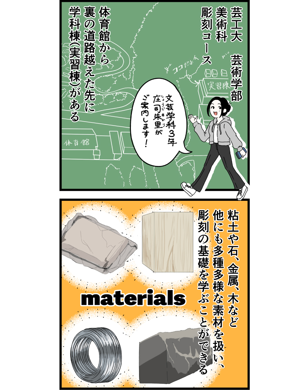 TOP > 文芸学科のマンガ連載 > 【マンガ連載】オトナの知らない芸工大 #014 「彫刻・キャラクター造形コース編」