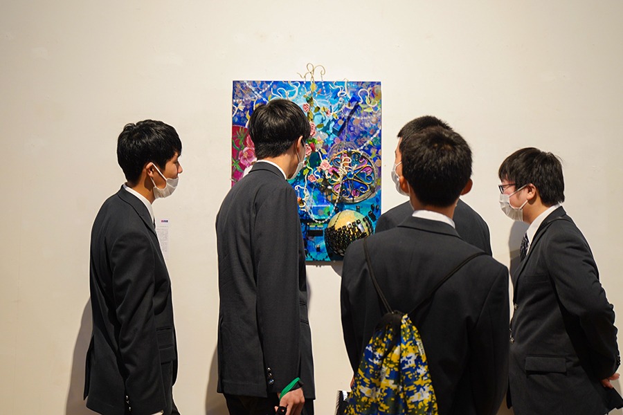 また、大学のいたるところに作品の展示が!この日は洋画コースの学生と企業が一緒に取り組んだ作品が、本館7Fのギャラリーに展示されていました。美術館に来たような気分になれちゃうのも芸工大ならでは。