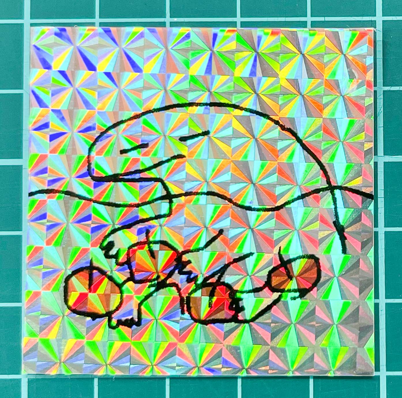 自分で描いたイラストを、ホログラムシールに重ねて――