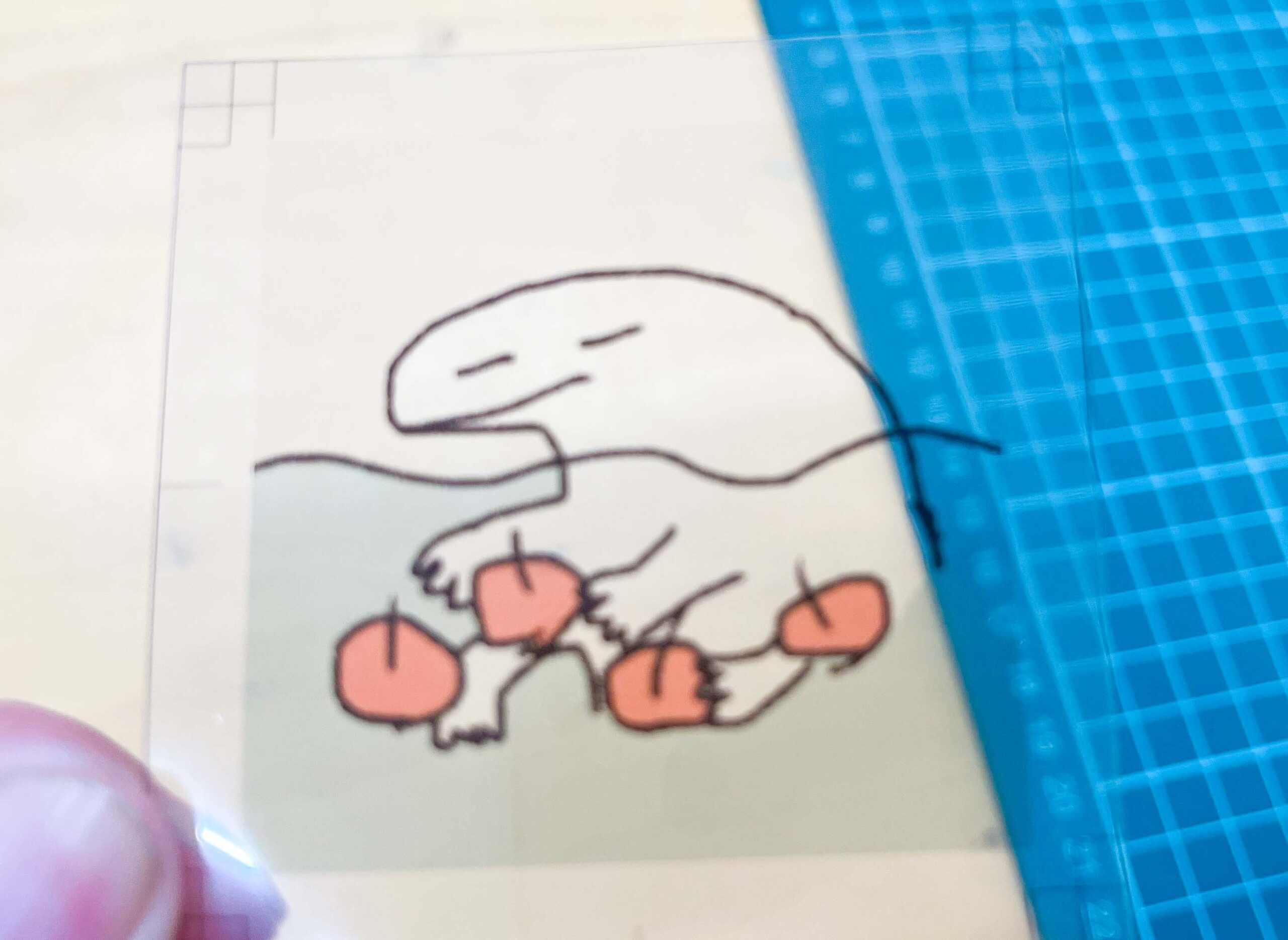まずはデジタルで描いたイラストを、透明ラベルシートにインクジェットで印刷。