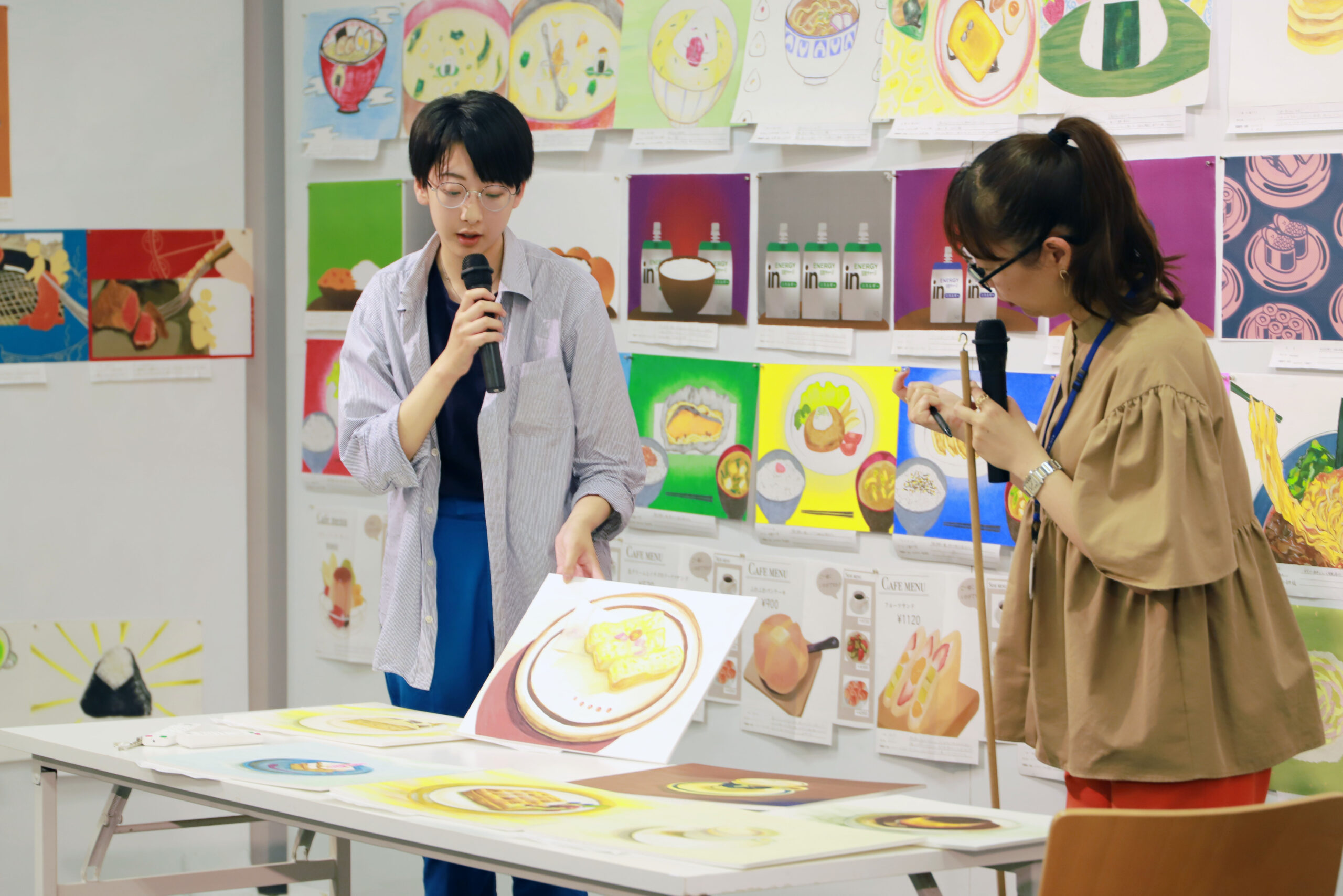 芸工大の「グラフィックデザイン学科イラストレーションコース」で学ぶのは、ただのイラストではなく「役割を持ったイラスト」です。例えば、「商品の良さを伝えるためのパッケージ」や「イベントの面白さを伝えるためのポスター」 などなど…。