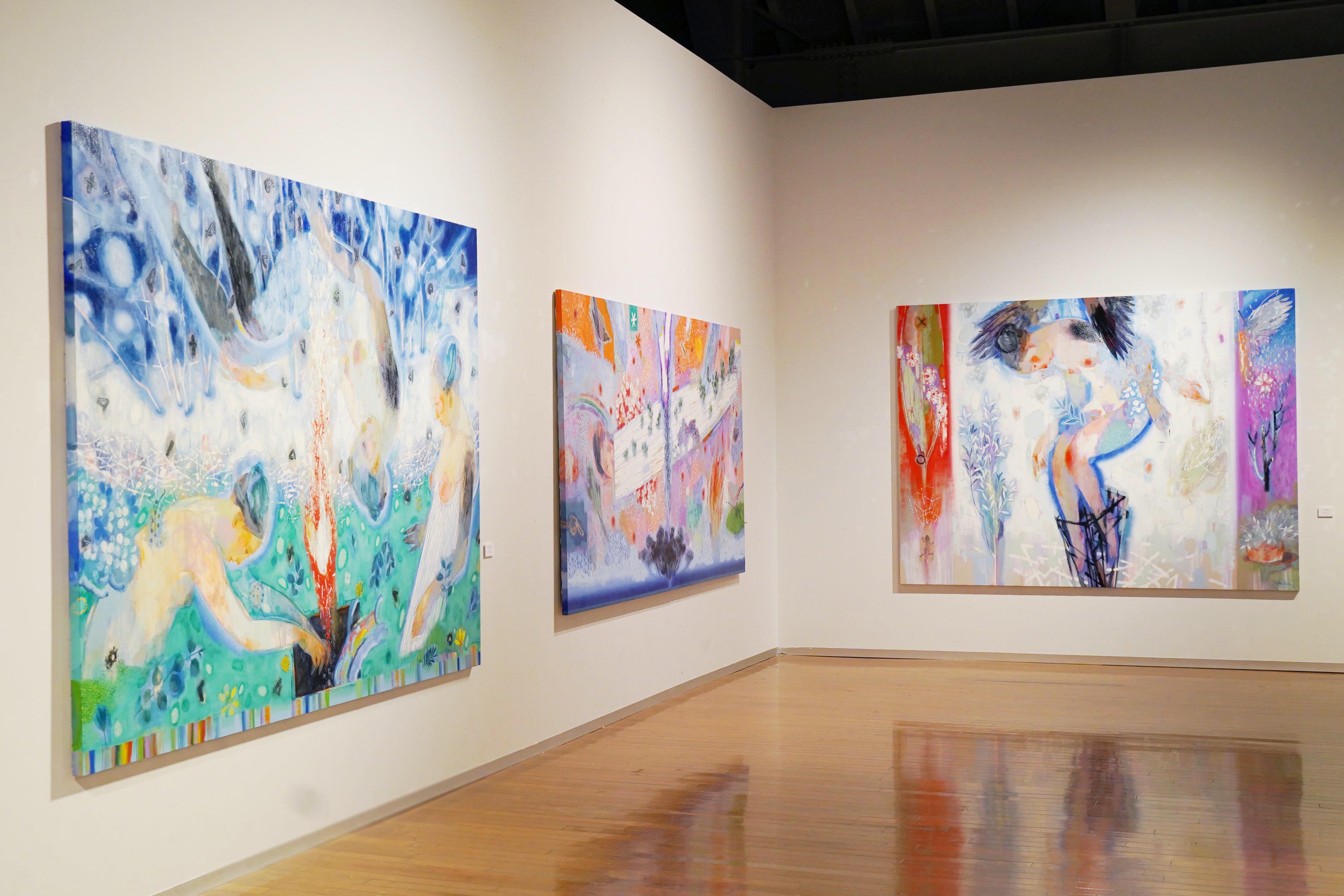 洋画コースでの教育に加えて2018年からは副学長も務められ、大学全体の教育・研究を見つめながら人材育成に尽力されてきました。今回は、そんな木原先生の展示の様子をお届けします!