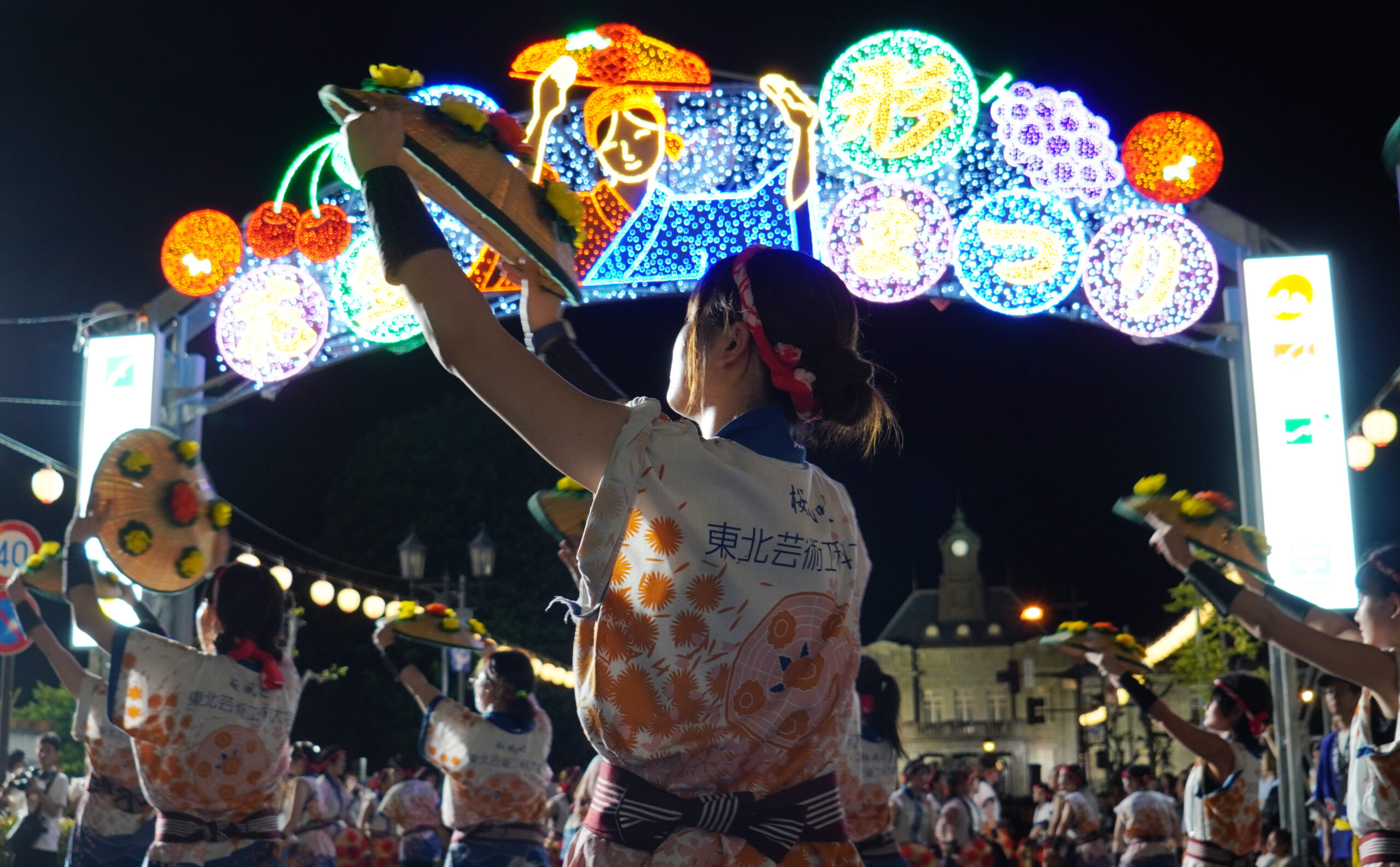 天野 私たちは、毎年8月に開催される山形花笠まつりに出場しています。花笠まつりは「東北六大祭り」のひとつで、8月5日~7日の3日間、約14000人の踊り手たちが山形市のメインロードを舞い踊る夏祭りです。約100万人が訪れるこの3日間は、山形市が1年で最も熱い3日間なんですよ。