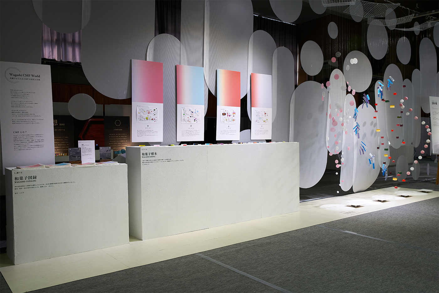 和菓子特有の色合いや素材感に着目し、color(色)・material(素材)・finish(仕上げ)の研究を行いました。和菓子からCMF の情報を抽出し分析。それらを応用し、12ヶ月24個のオリジナルCMFサンプルとインスタレーションを制作しました。小さな和菓子に広がる奥深い世界とその美しさを再発見できます。