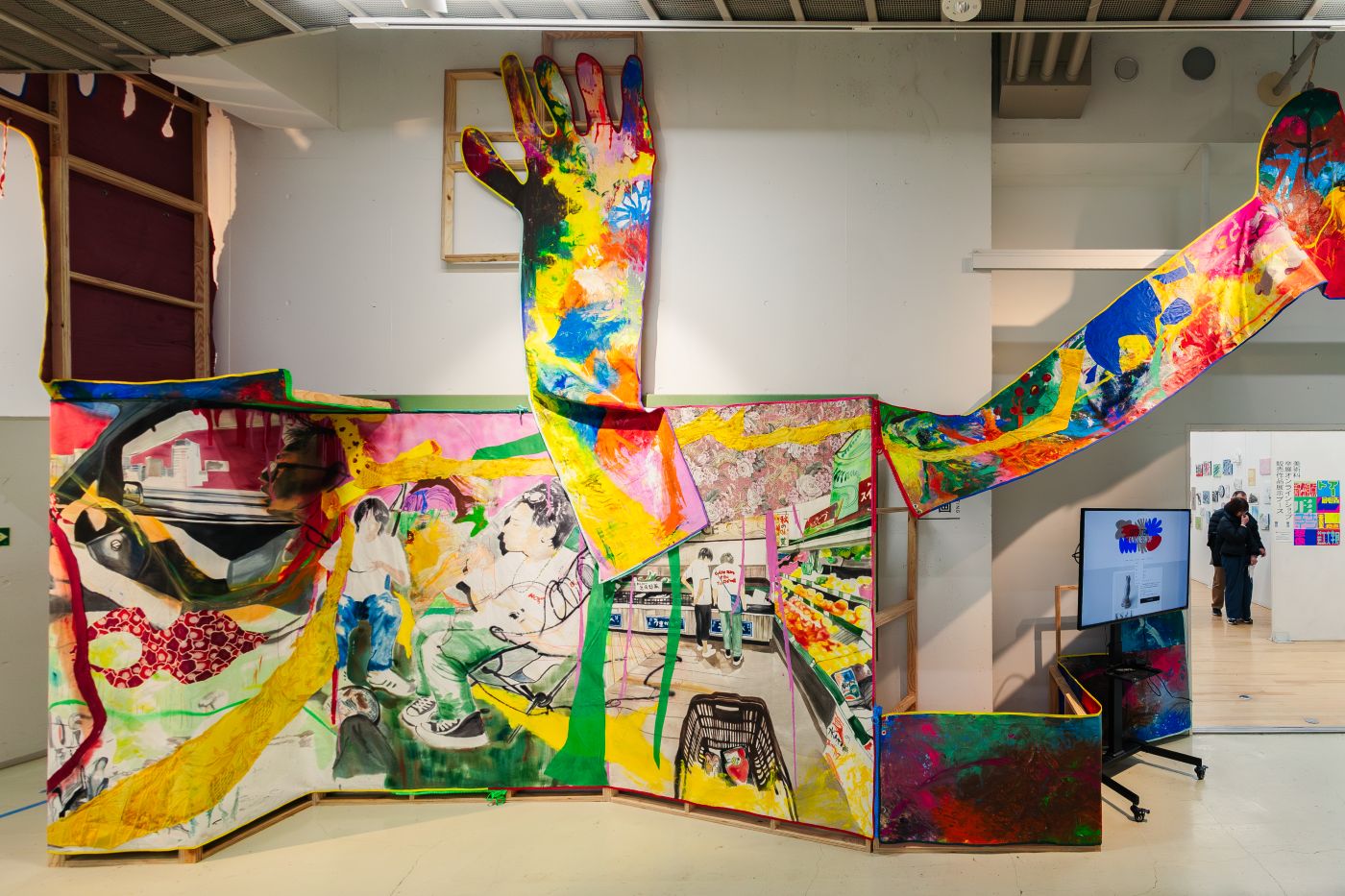 本作品は、それらの活動の集積をアーカイブするかのように、40mに及ぶ絵画を軸に、映像・立体などを織り交ぜた複合的な表現として構成されている。その情報量と出力は圧倒的であり、生活とアートの境界を越境しながら、出逢いから生じる感情や刺激のドラマを表現へと転換する力が際立つ。個と公の曖昧な輪郭を行き来しつつも確かな実態を示し、自身の経験を社会的な文脈へと拡張しながら、膨大な情報を作品として統合する能力は群を抜いている。今後、アーティストとしてその表現をさらなるスケールへと押し上げ、次のフェーズへ飛躍していくことを確信している。