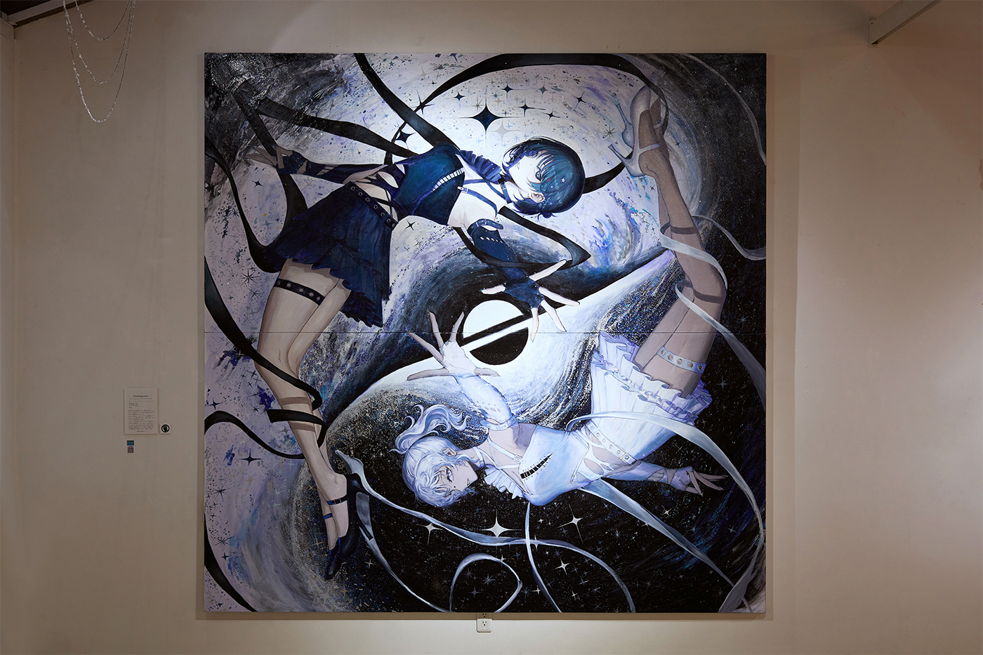 真逆だと思っていたものが意外と近かったり、縁遠いものだと思っていてもどこかで繋がっている。そんな現代社会で忘れがちな「表裏一体」をテーマとしている。また、昨今AIなどでデジタルイラストの価値が分からなくなってきている中、人が描いた証拠である一点物のアナログイラストの価値は、逆に上がるのではないかと思い形に残したかった。あとはカッコよくて可愛いキャラをキラキラに描きたかった。