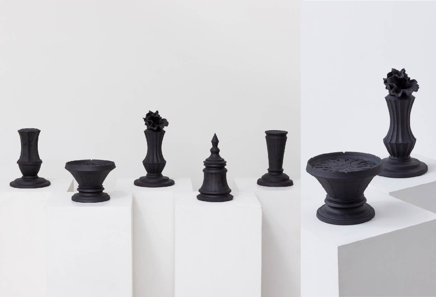 「陶」という素材に、無機質さと冷淡な表情を持たせることに惹かれ、人間の手からその質感を生み出すことに、ある種の神秘性を感じている。神も神話も全て人間が作り出した存在である。その触れられない存在を触れられる形として残す。