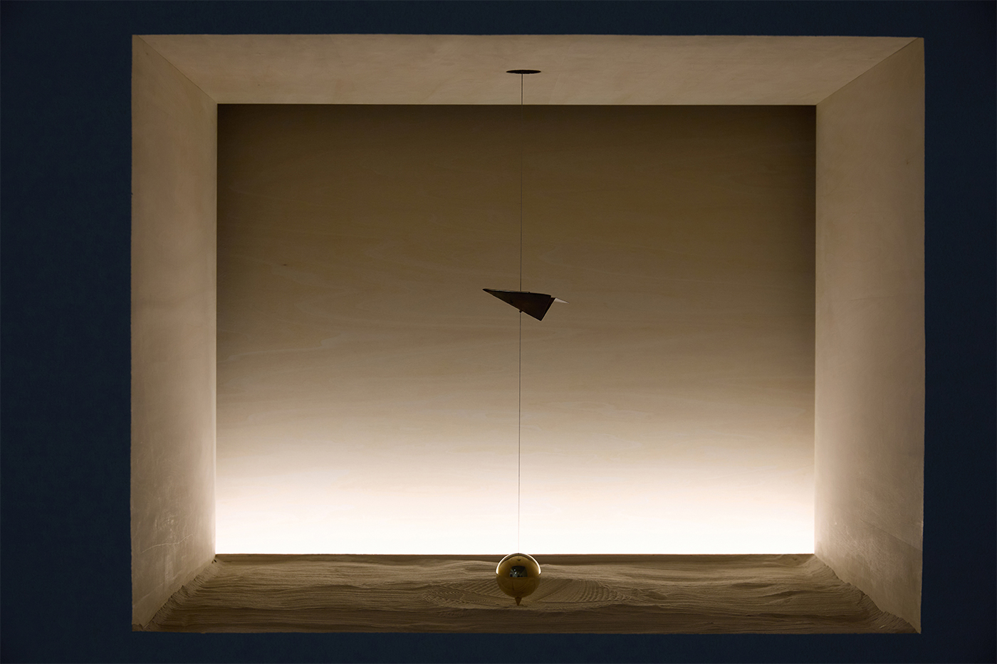 田中美紀|Flight青森県出身佐々木理一ゼミH2730×W2680×D640 mm 洋白、真鍮、鉄、珪砂、木材、ナイロン糸