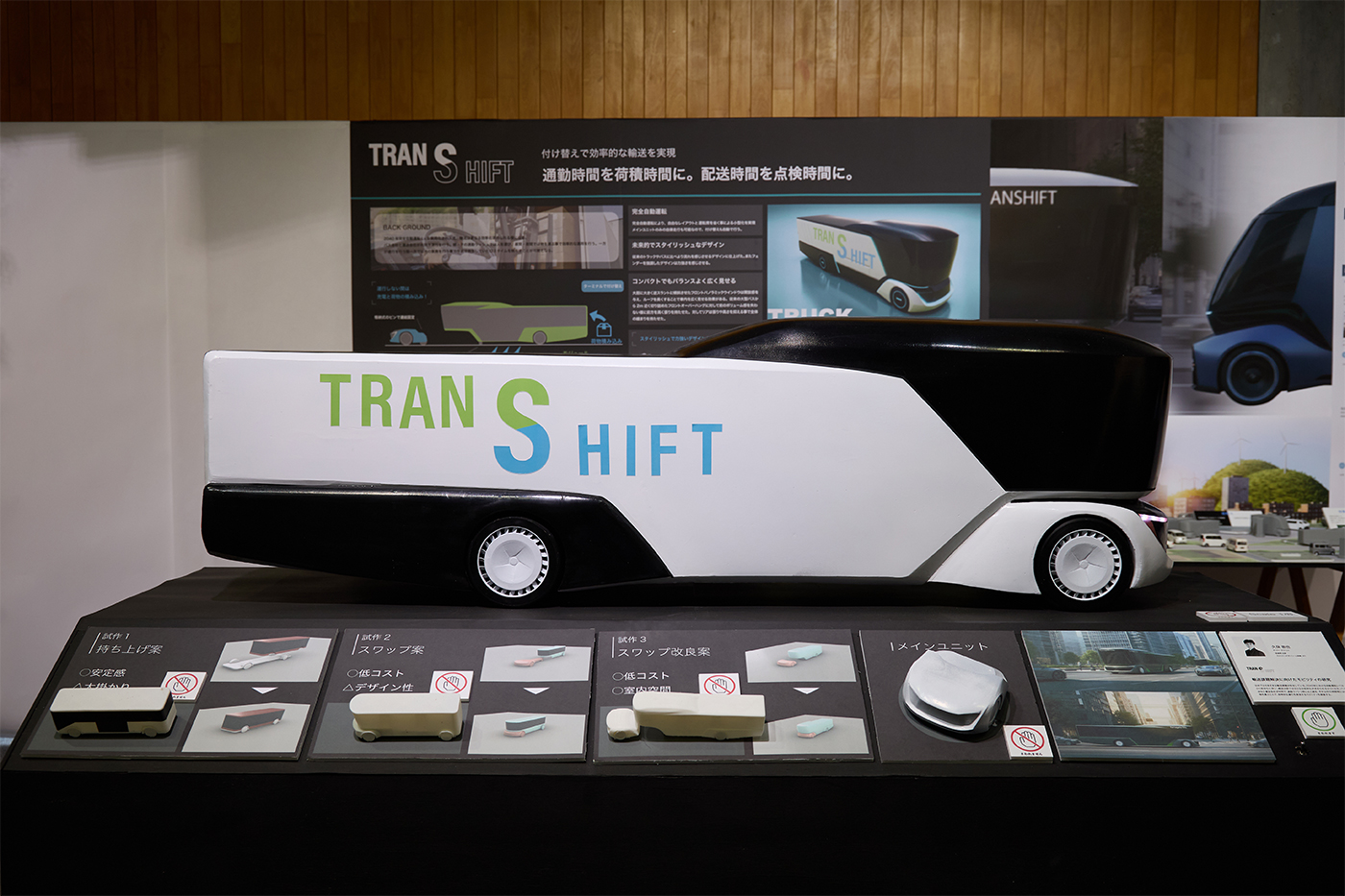 日本では様々な輸送課題が存在している。2040年自動運転Lv.5の実用化に伴い、輸送関連は更なる効率化を求められる様になる。バス会社と運送会社が共同で通勤ラッシュでは人を、その他の時間では物を運ぶことで効率的な運行を行っていく。空き時間では他の業務を行いロスタイムを無くす。