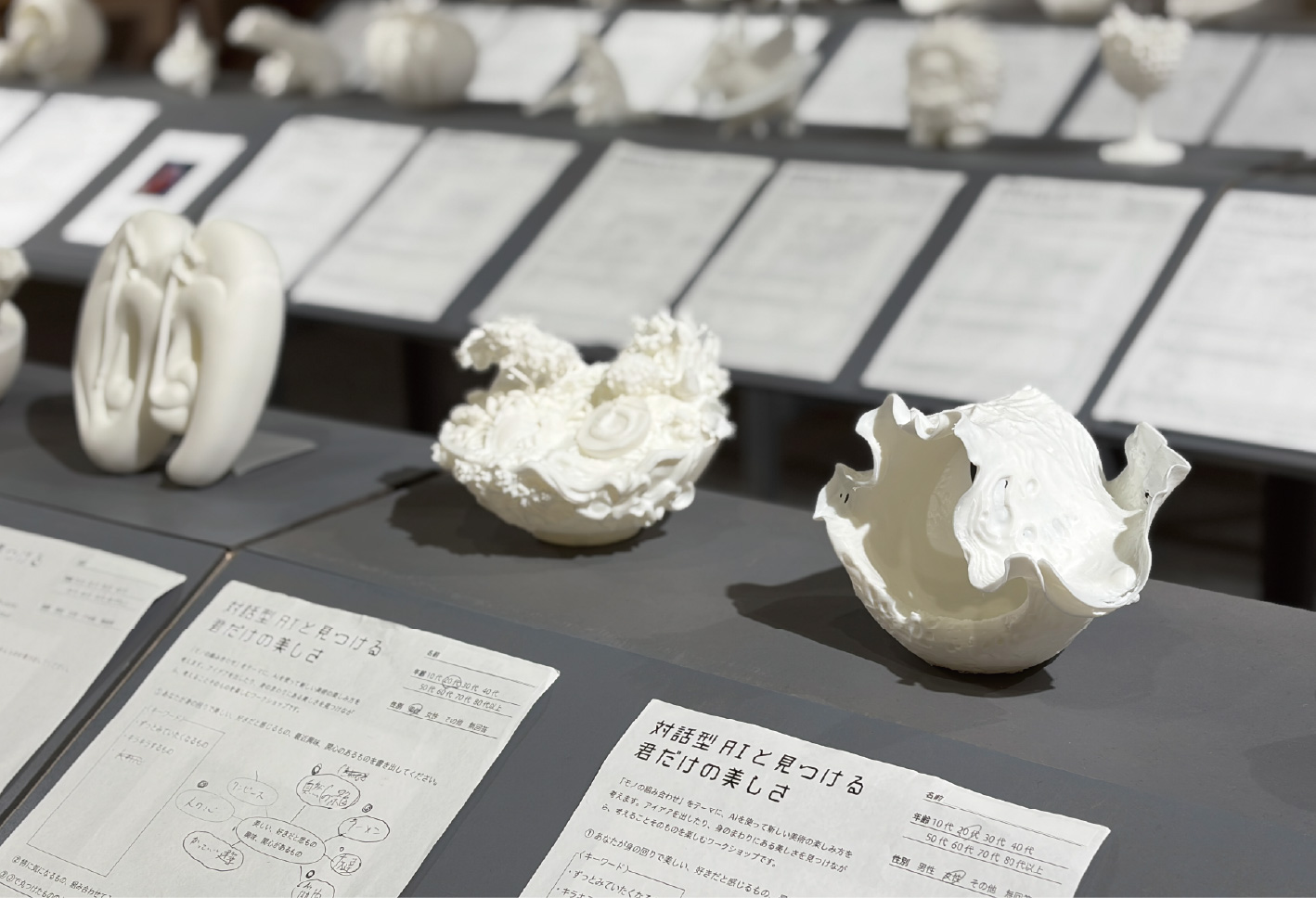 人とAIは創造の場でどのように関わることができるのでしょうか。本研究は子どもたちに美術をもっと身近に、楽しく感じてほしいという思いから始まりました。AIをアイデア発想や制作の伴走者として用いることで、誰でも試すことのできる発想展開の手法と創作プロセスを生み出しました。本展示は美術教育におけるAIの活用実践とその展望を総括した立体論文です。人とAIが協働した創作の過程、そしてその可能性を示します。