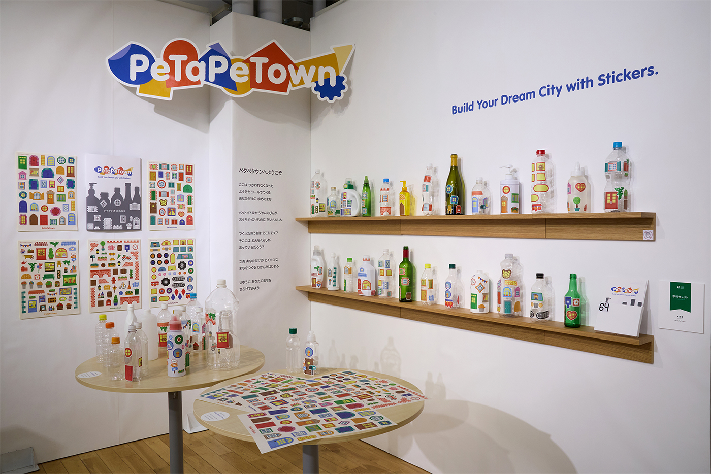 使い終わった空き容器を活用し、自由にまちをつくる体験ができるシールブックです。シールを用いて新たな役割を与え、捨てる前にもう一度活躍できる場をつくることを目的としています。また、容器の形や質感などの個性に気づくことで、身近な素材への興味や創造力を育むきっかけになればと考えました。シールシートは、A3の大きなサイズにすることで、床に広げ、部屋いっぱいに楽しさが広がる作品を目指しました。