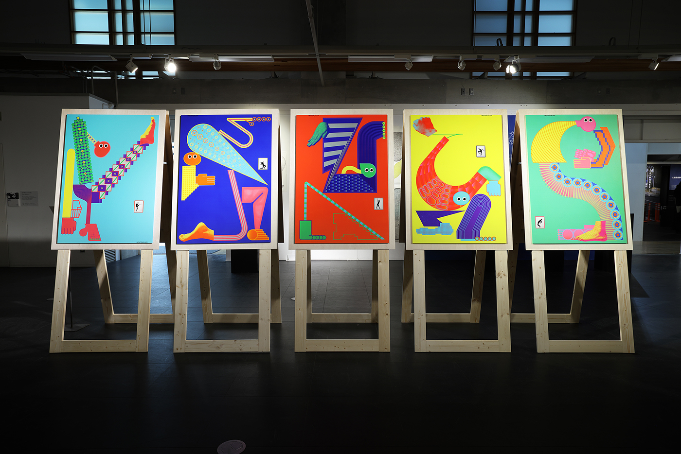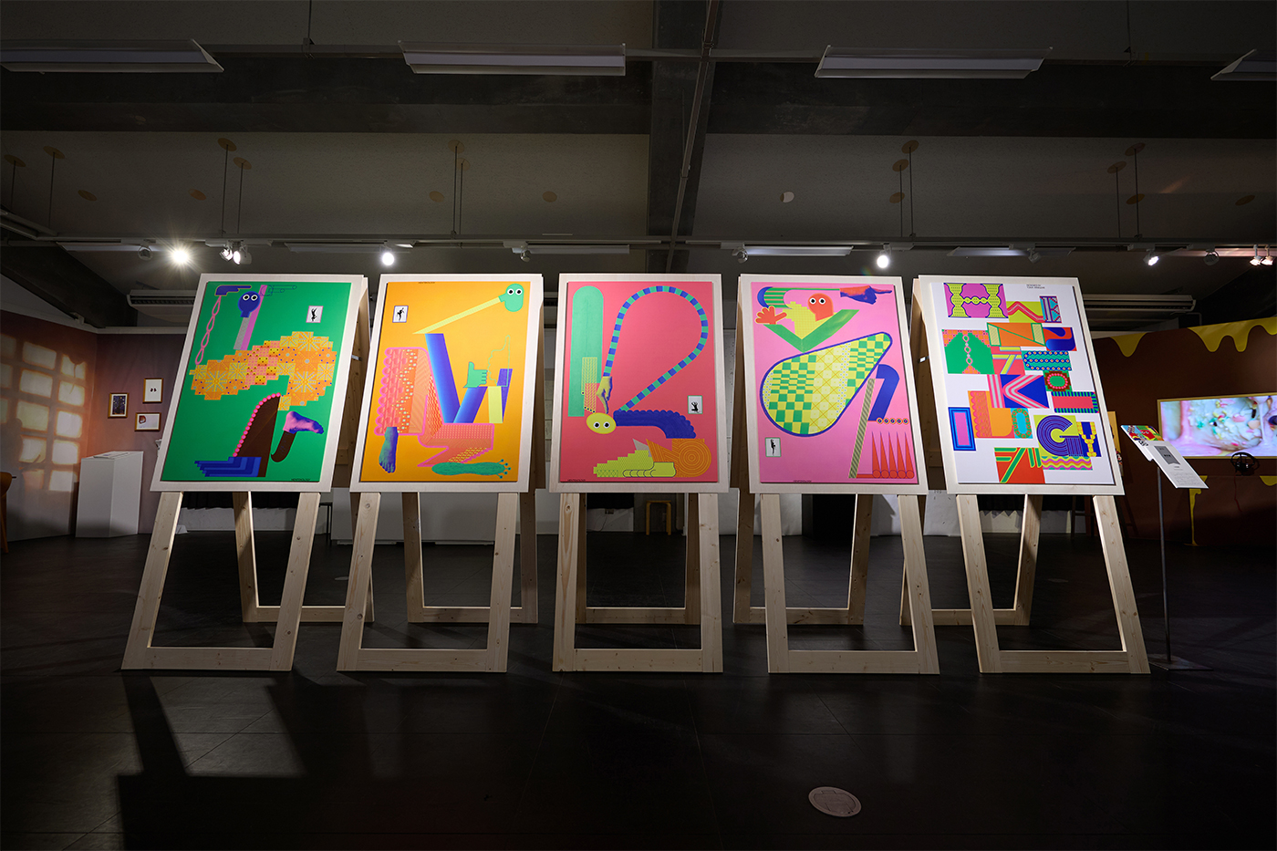 持ち前のポジティブな思考は、これまで多くの仲間を支えてきたことと思います。そうした姿勢の中で見出された「ヘンテコな動きをすると元気が出る」という卒業制作のテーマは、等身大でありながらも、グラフィックデザインとして新たな表現に挑戦する意欲的なものでした。思考と身体の双方を行き来する制作を重ねた末に、ようやくその感覚をかたちとして体現できた本作は、確かに「山﨑瞳真のデザイン」になったように思います。そしてその到達点に、グラフィックデザイナーとして少しばかり嫉妬を覚えました(嬉)。卒業後、山﨑さんは少数精鋭の有名デザイン事務所でデザイナーとして活動していきます。本卒業制作を通じて新たな視点を獲得した山﨑さんは、既存の通例を疑いながら、きっとその“次”を私たちに見せてくれることでしょう。