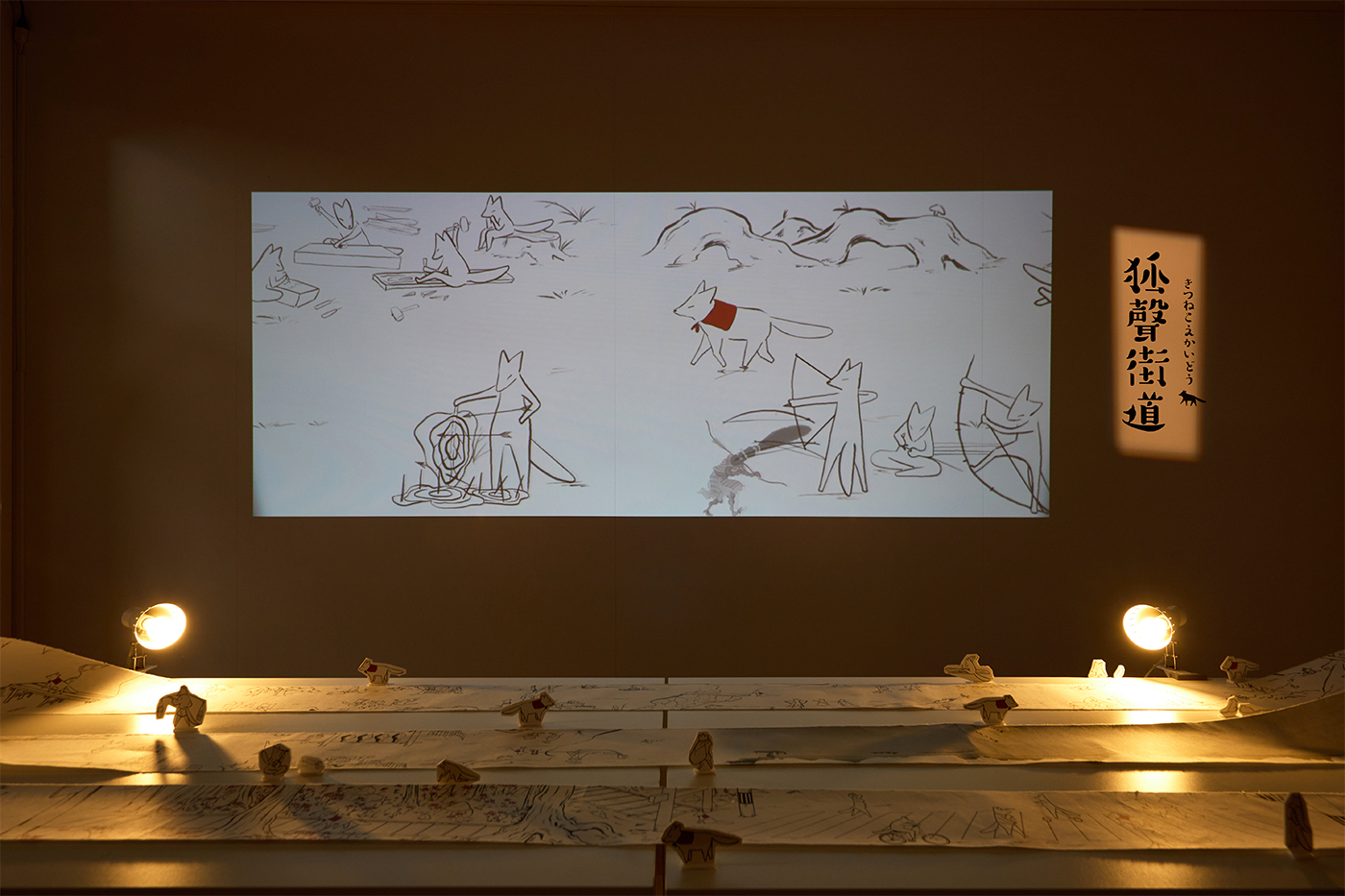本作は、日本文化において特別な存在として信仰され続けてきた「狐」を通し、日本人の精神文化と社会の変化を描く作品である。絵巻の形式と鳥獣戯画風のユーモラスな表現を用い、神と人、信仰と日常の境界が曖昧だった世界観を可視化した。時代が移り変わっても失われない信仰心や、形を変えながら受け継がれる文化の再生を、狐が再び鳥居へ戻る物語として表現している。