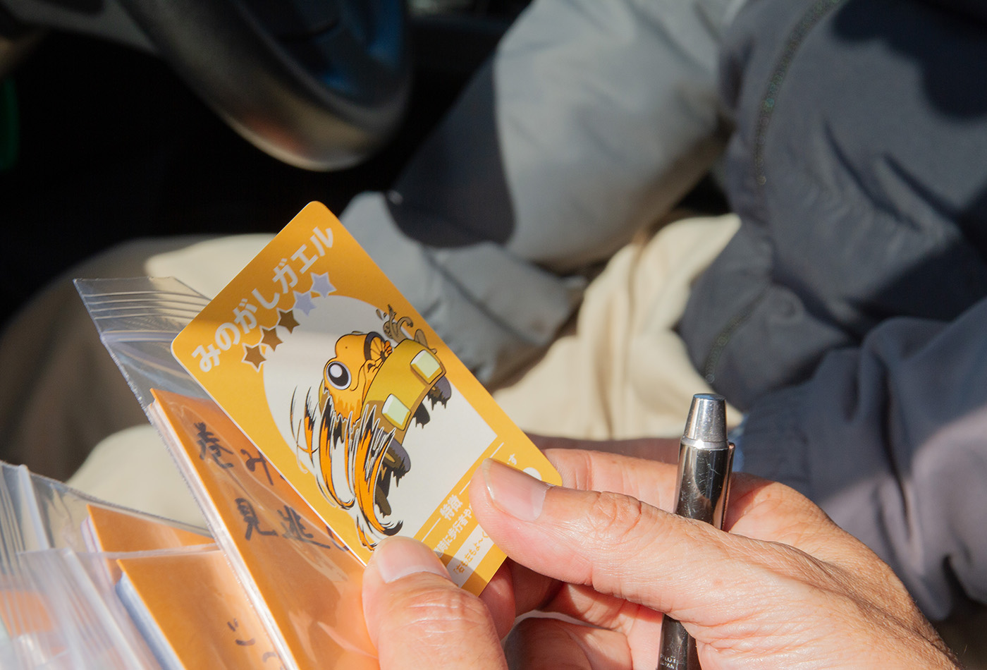 高齢者講習の知見を日常の運転に定着させるための反応を促す「運転カエルカード」の提案である。講習内容が一過性で終わる課題に対し、実車指導の結果を個別に反映・可視化する仕組みを構築。車内や自宅に掲出可能な形態とすることで、運転前の注意喚起や走行後の自己評価を促す生活動線を設計した。講習と日常をシームレスに繋ぎ、高齢ドライバーが自律的に安全意識を更新し続けるための新たな支援の在り方を提示した。