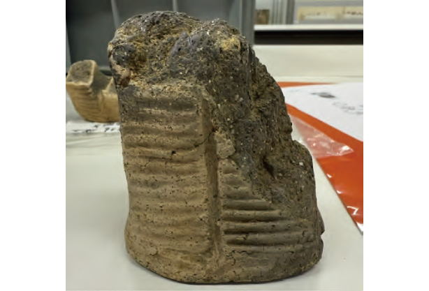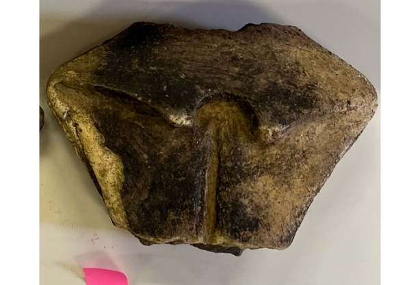 6遺跡を対象とし、資料の分析・観察を行った(図1)。分析の結果、焼成中に事故割れしたとみられる土偶が確認された(図2)。そのような偶発的要因によって、完形資料が少ないと推測される。また、土偶内部には生焼け状態が推測され、壊れやすさや風化を促進する要因と考えられる。さらに、上半部の破損面には真っ直ぐに割れ外部からの圧力が想定されるものと(図3)、斜めや不規則に割れた自然的破損とみられるものが存在し、破損形態から故意破損と偶発的破損の双方が推測された。以上より、西ノ前型土偶の破損には偶発的要因が大きく関与する一方、故意的破損の可能性も否定できない。