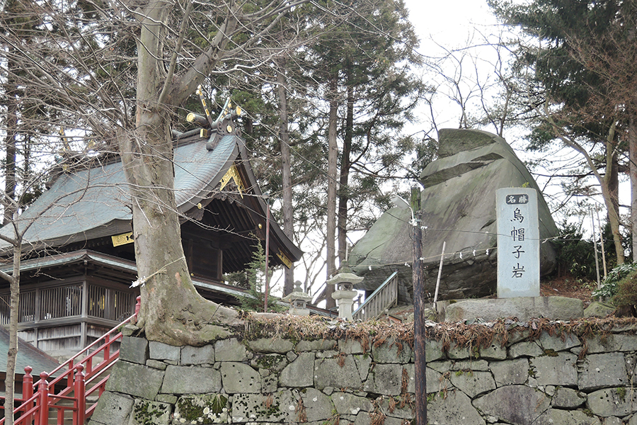 ところが盛岡城では築城期の造成工事の際に城山からゴロゴロ、石がでてきたらしい。平成の石垣修理工事に伴って背面の地盤を掘削すると、地面の中から一部割られた石材や未採掘の巨石が顔を出してきた。いまでも三ノ丸には烏帽子岩(高さ6.6m、周囲約20m)や無名の巨岩が露頭している。烏帽子岩は往時、三ノ丸造成工事の際に掘り出されたが、あまりに根が深いので割れず、瑞兆として祀ったとの伝えがある。堀跡(鶴が池)に残る巨石や盛岡地方裁判所前の「石割桜」、中津川の「だんご石」などは、あたり一帯に石材が豊富にあったことを窺わせる。