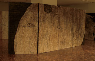 寒冷紗に土、石膏、岩絵具、クレヨン/227.3×456cm/2009年