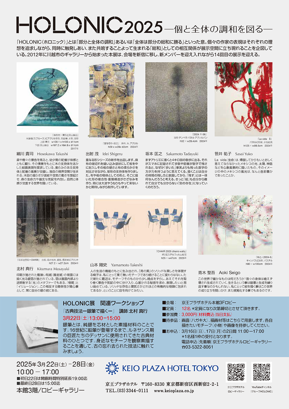 美術科 洋画コースの細川貴司(ほそかわ・たかし)准教授が、3/22(土)から京王プラザホテル(東京都新宿区)で開催されるグループ展「HOLONIC 2025展 -個と全体の調和を図る-」に作品を出品します。