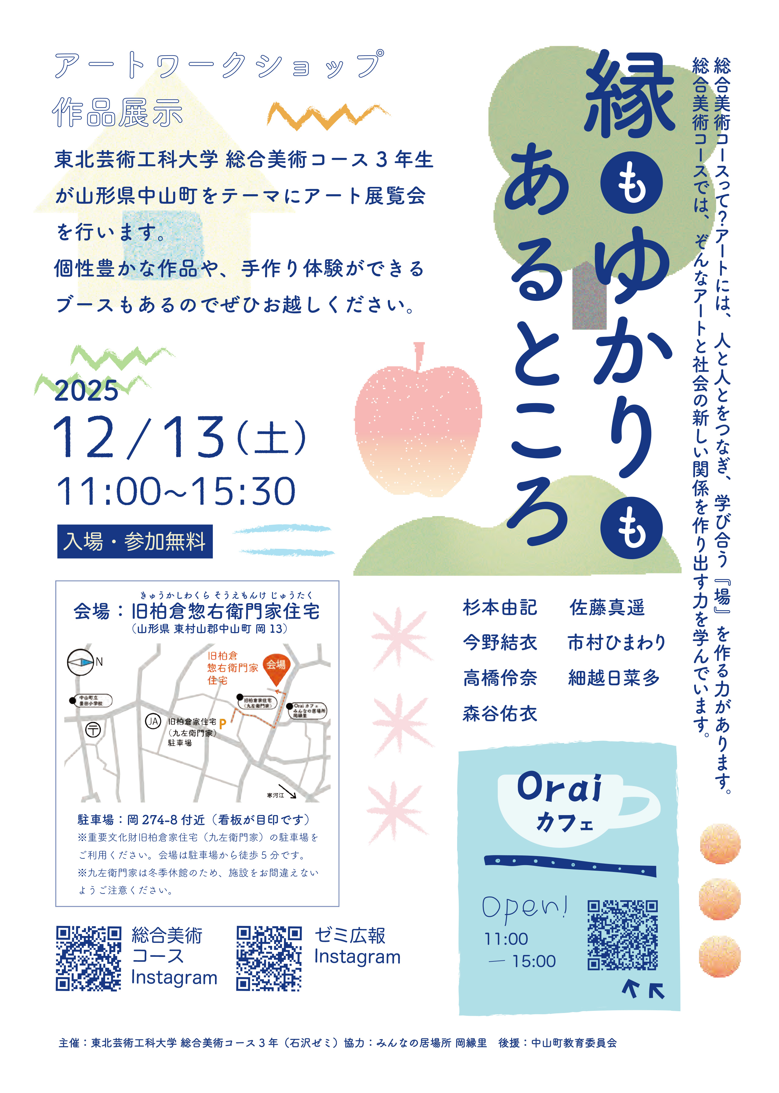美術科 総合美術コース 石沢ゼミの3年生が、山形県中山町をテーマ・会場に12/13(土)に展覧会を開催