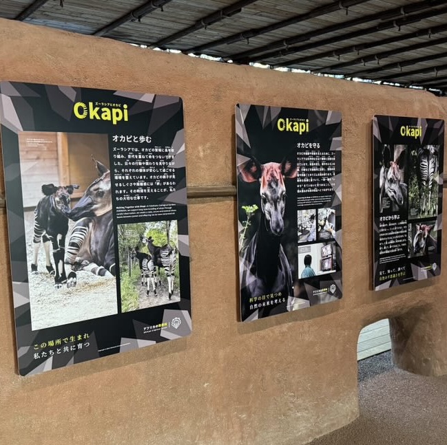 ズーラシアがJICAと進めるプロジェクト「オカピのふるさとを知ろう『地球の肺』コンゴ盆地について理解を深める」に合わせて、常設パネルが設置され、さらに同パネルのトーンに合わせ、動物園においての『オカピ』に焦点を当てた解説パネルも追加設置されました。