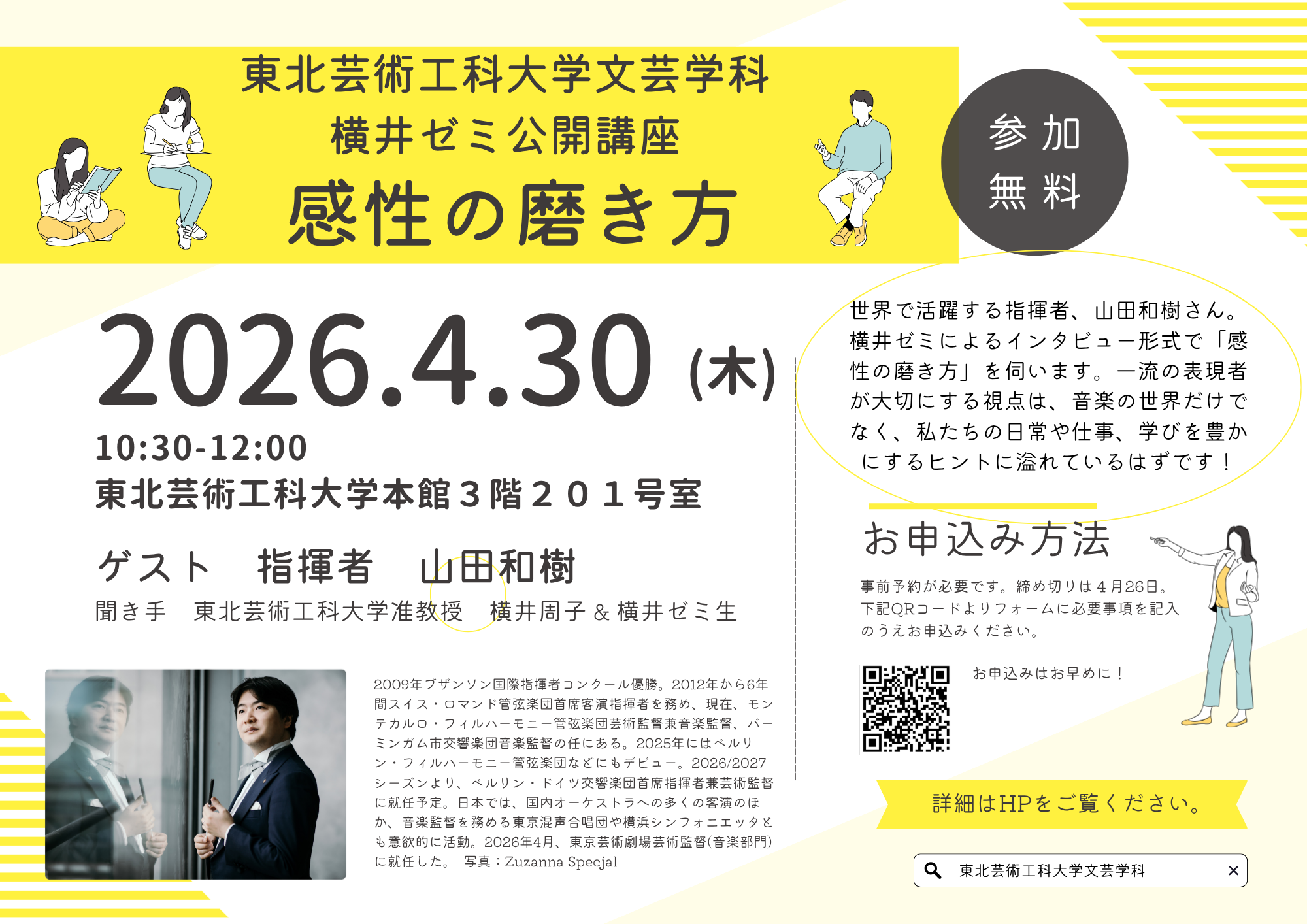 文芸学科 横井ゼミが企画・運営する公開講座『感性の磨き方』が4/30(木)に開催