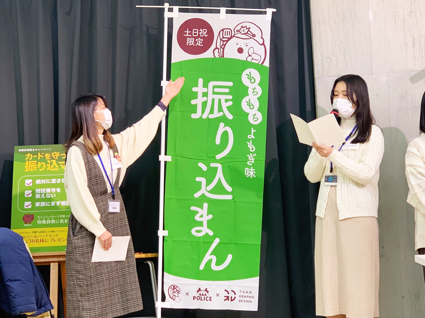 芸工大、あじまん、山形県警本部のコラボ企画、特殊詐欺被害防止あじまんを販売