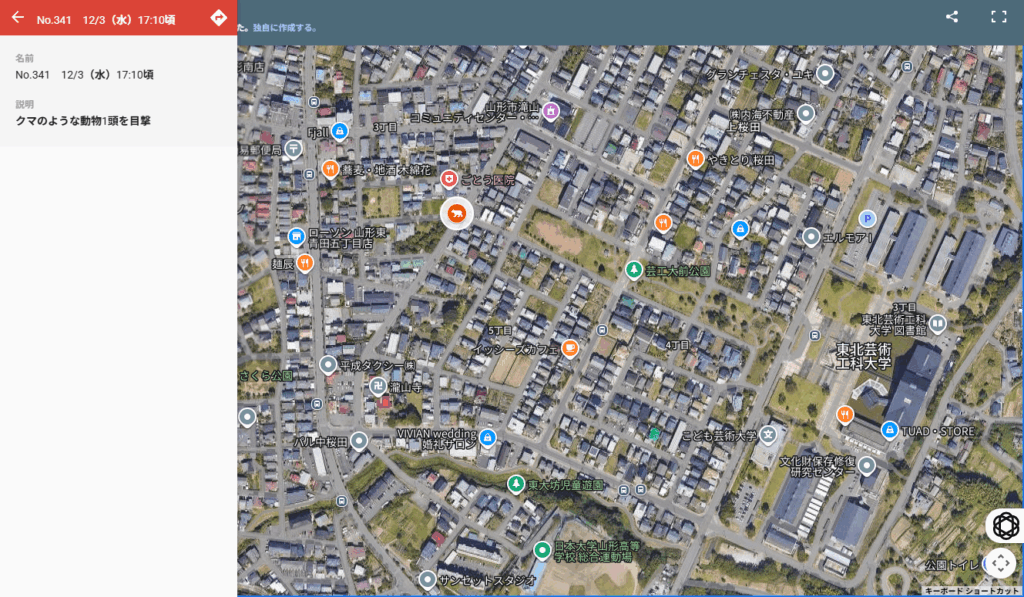 【該当エリア:山形市クマ出没状況(マップ)より】