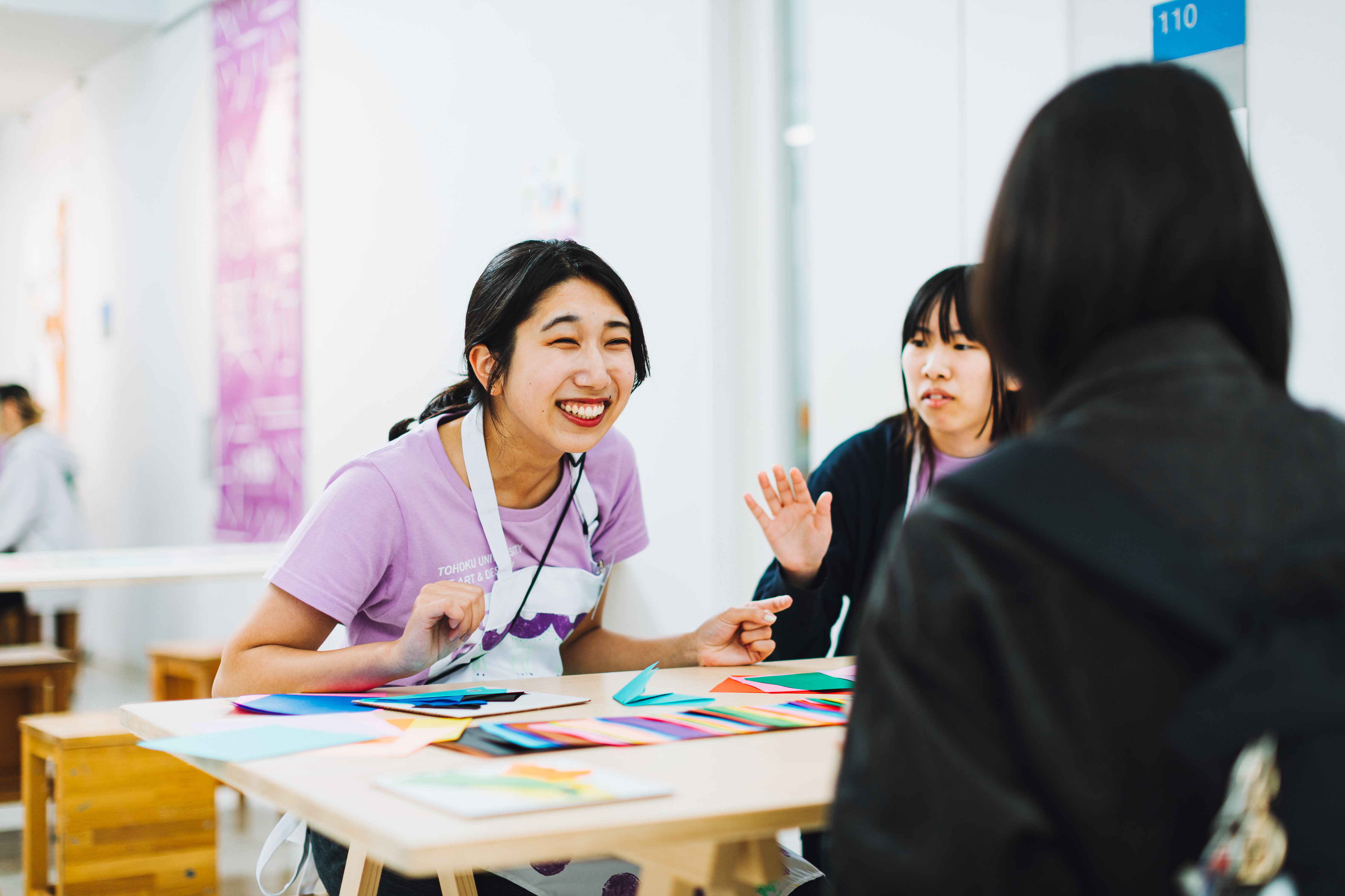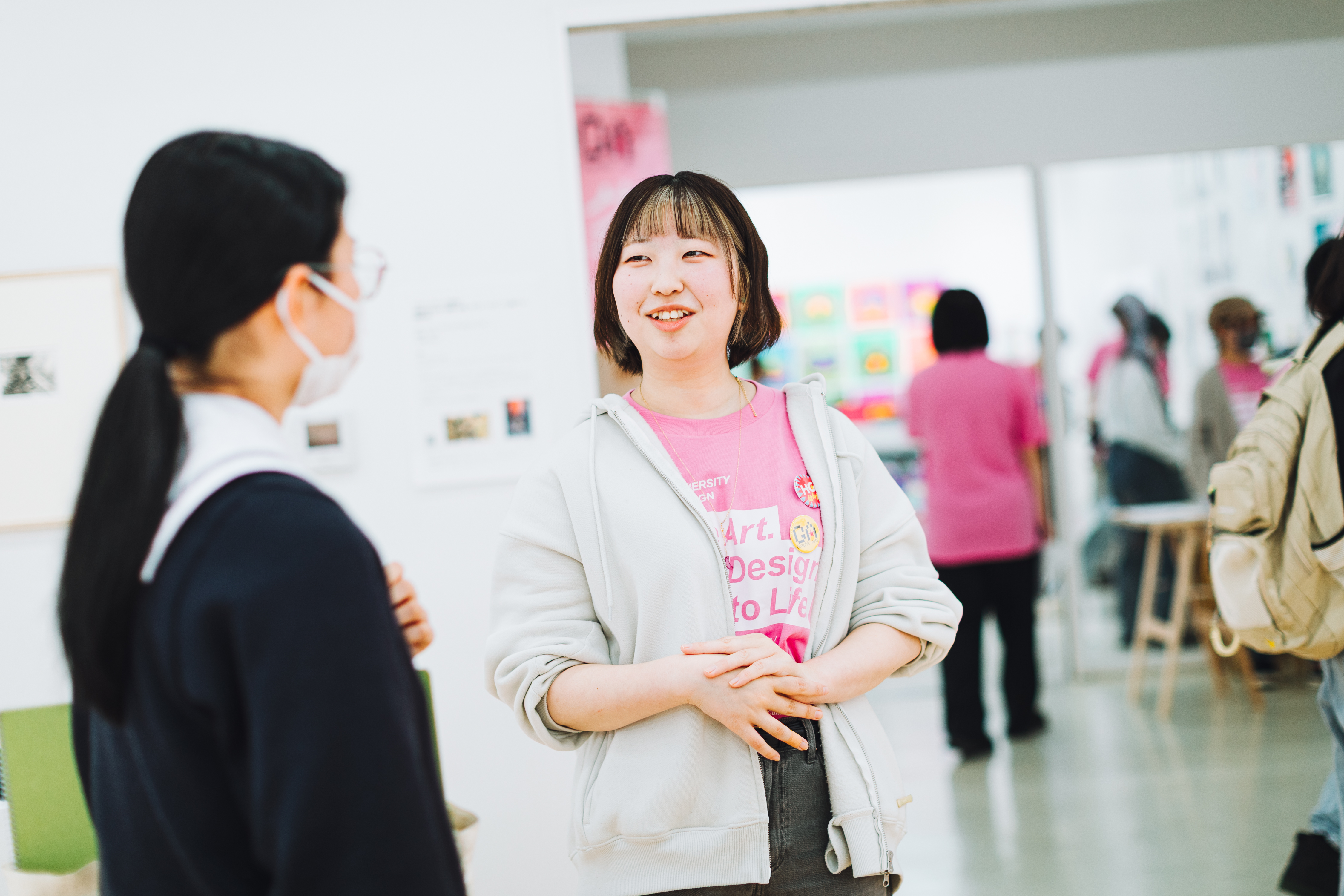 在学生と気軽におしゃべりしながら、芸工大の“リアルな大学生活”をのぞける交流企画です!授業や課題、サークル、アルバイト、友だちづくりなど、気になることはなんでも質問OK。先輩たちから直接アドバイスを聞けるので、入試準備のヒントもきっと見つかります。芸工大のキャンパスライフ、ちょっとのぞいてみませんか?